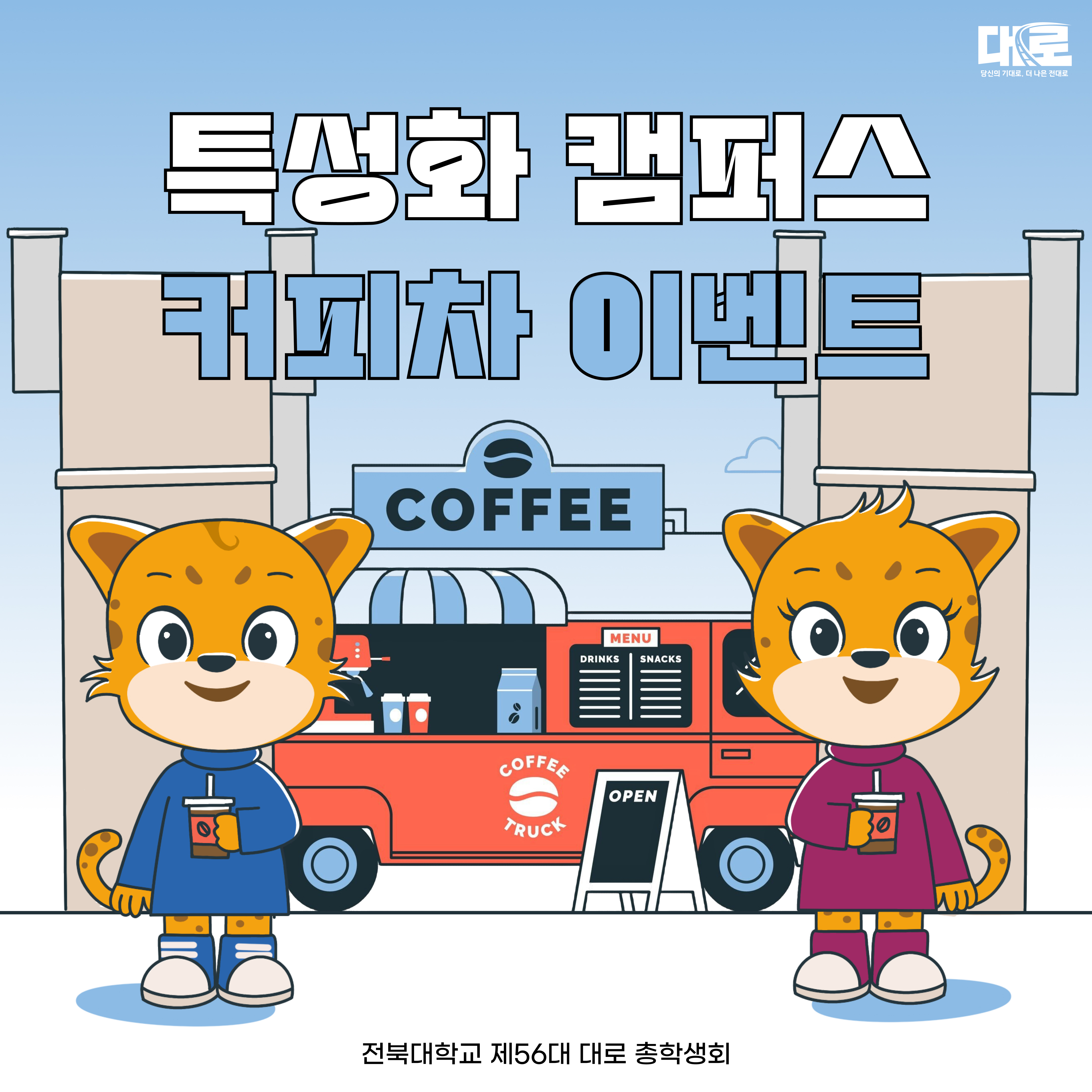 학업과 일상에 지친 특성화 캠퍼스 학우님들을 응원하고, 활발하고 즐거운 축제를 위해 대로 총학생회가 찾아갑니다!