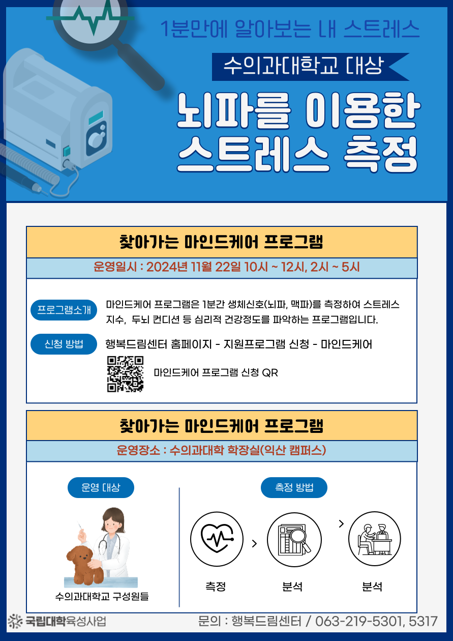 (마감) [행복드림] 수의과대학 뇌파를 이용한 스트레스 측정 프로그램 안내(11월)