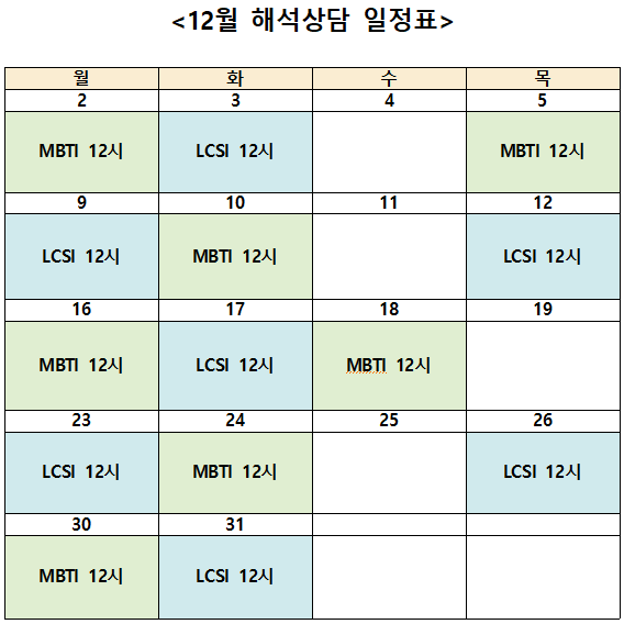12월 심리검사(인성검사) 신청 안내