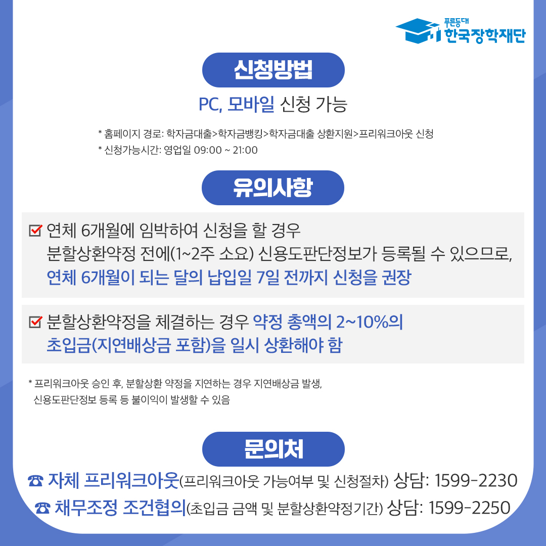(한국장학재단) 2025년 특별상환유예대출 및 프리워크아웃 제도 안내