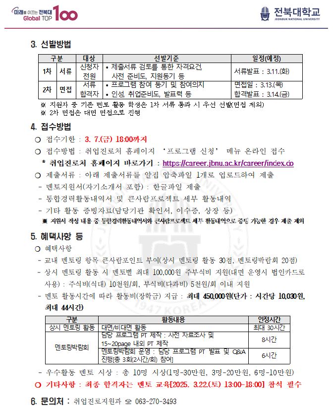 * 신청 홈페이지: https://career.jbnu.ac.kr/sites/career/index.do