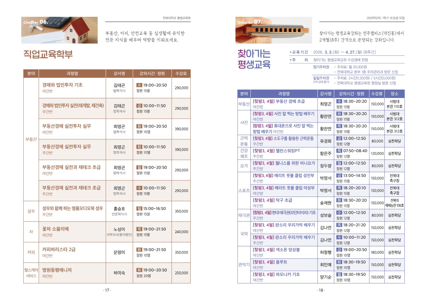 [평생교육원] 2026학년도 1학기(봄) 수강생 모집 안내-찾평(3,4월 포함)