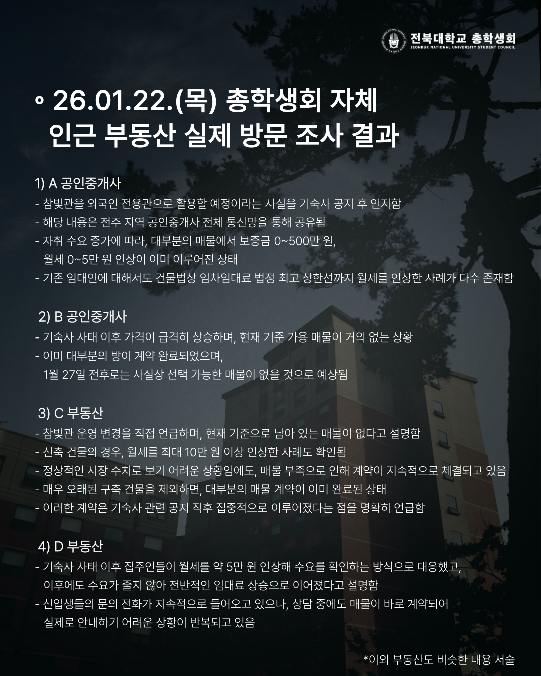 [전북대 인근 자취방 시세 급상승 및 매물 부족 실태조사]