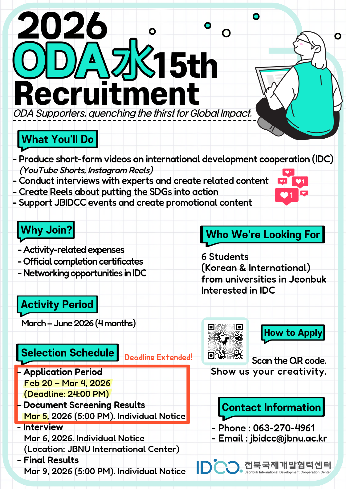 ์๋ฐ๊ธฐ ์ ๋ถ์ง์ญ ๋ํ์ ODA ํ๋ณด๋จ ODASU(ๆฐด) 15๊ธฐ๋ฅผ ๋ชจ์งํฉ๋๋ค!