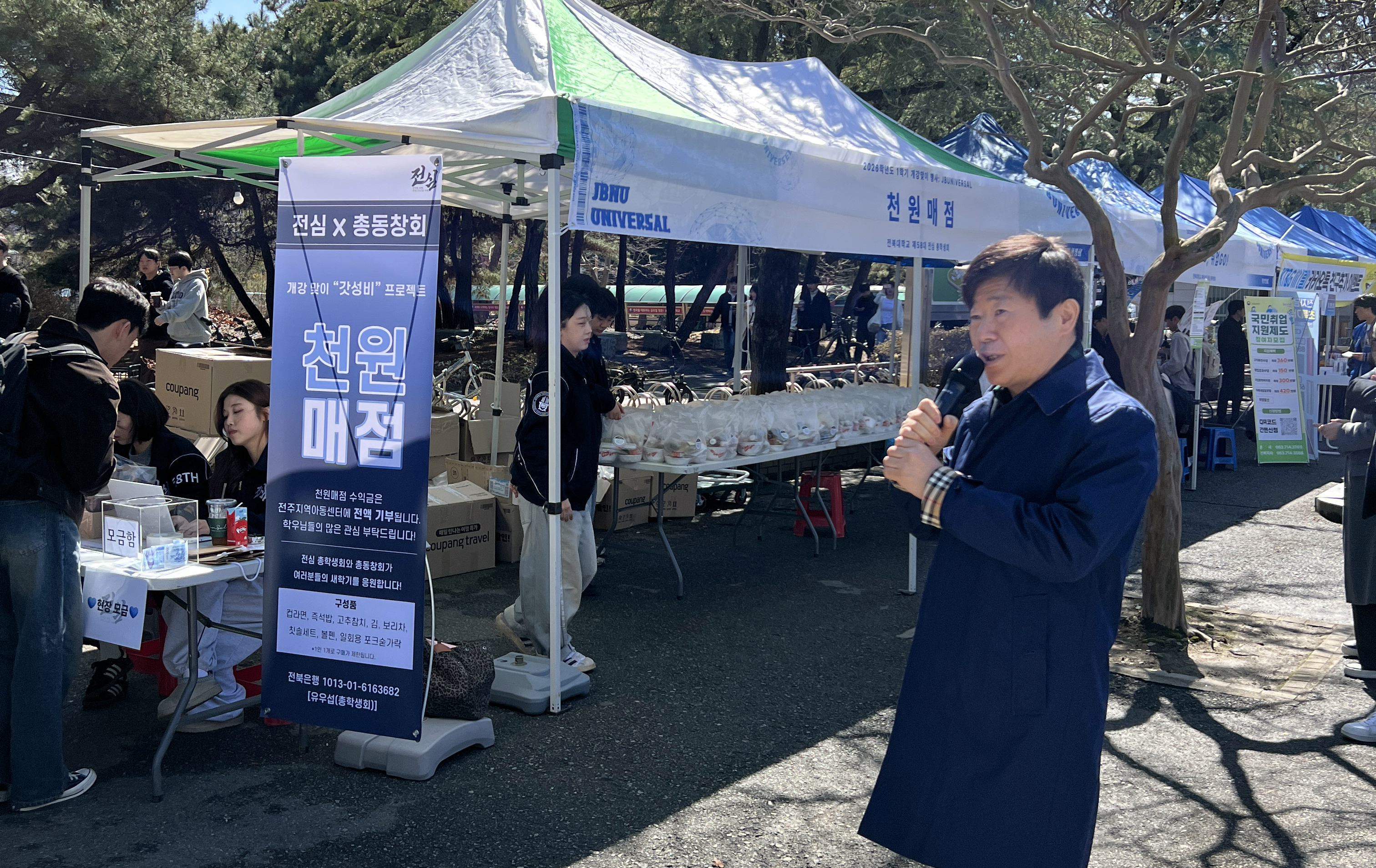 전북대학교 총동창회(회장 최병선)가 3월 3일 새 학기를 맞아 ‘전심’ 총학생회와 손잡고 ‘천원매점’ 행사를 개최했다고 4일 밝혔다.