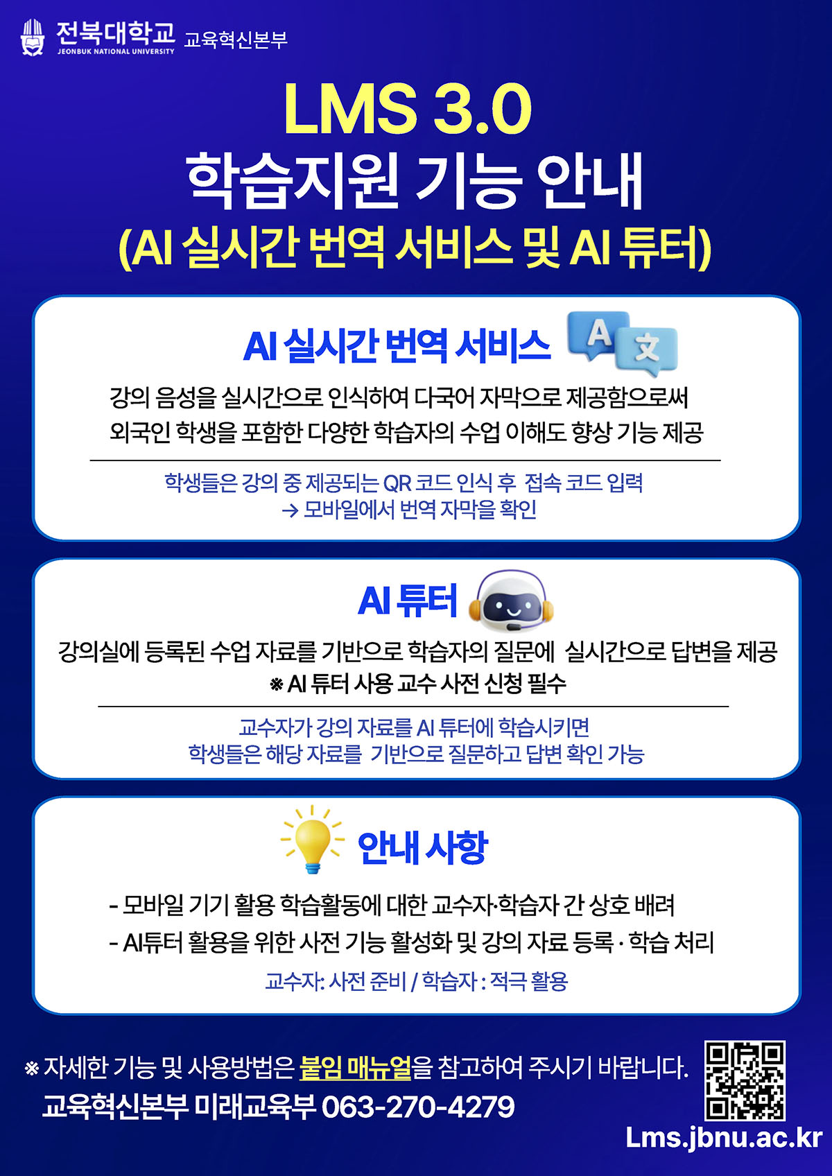 LMS 3.0 학습지원 기능 안내 (AI 실시간 번역 서비스 및 AI 튜터)