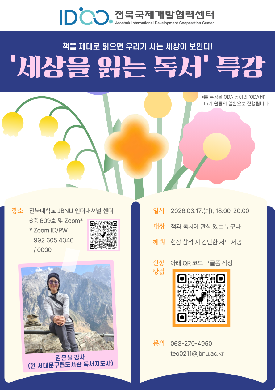 ※ 본 특강은 전북국제개발협력센터 ODA 동아리 ‘ODA利’ 15기 활동의 일환으로 진행됩니다.