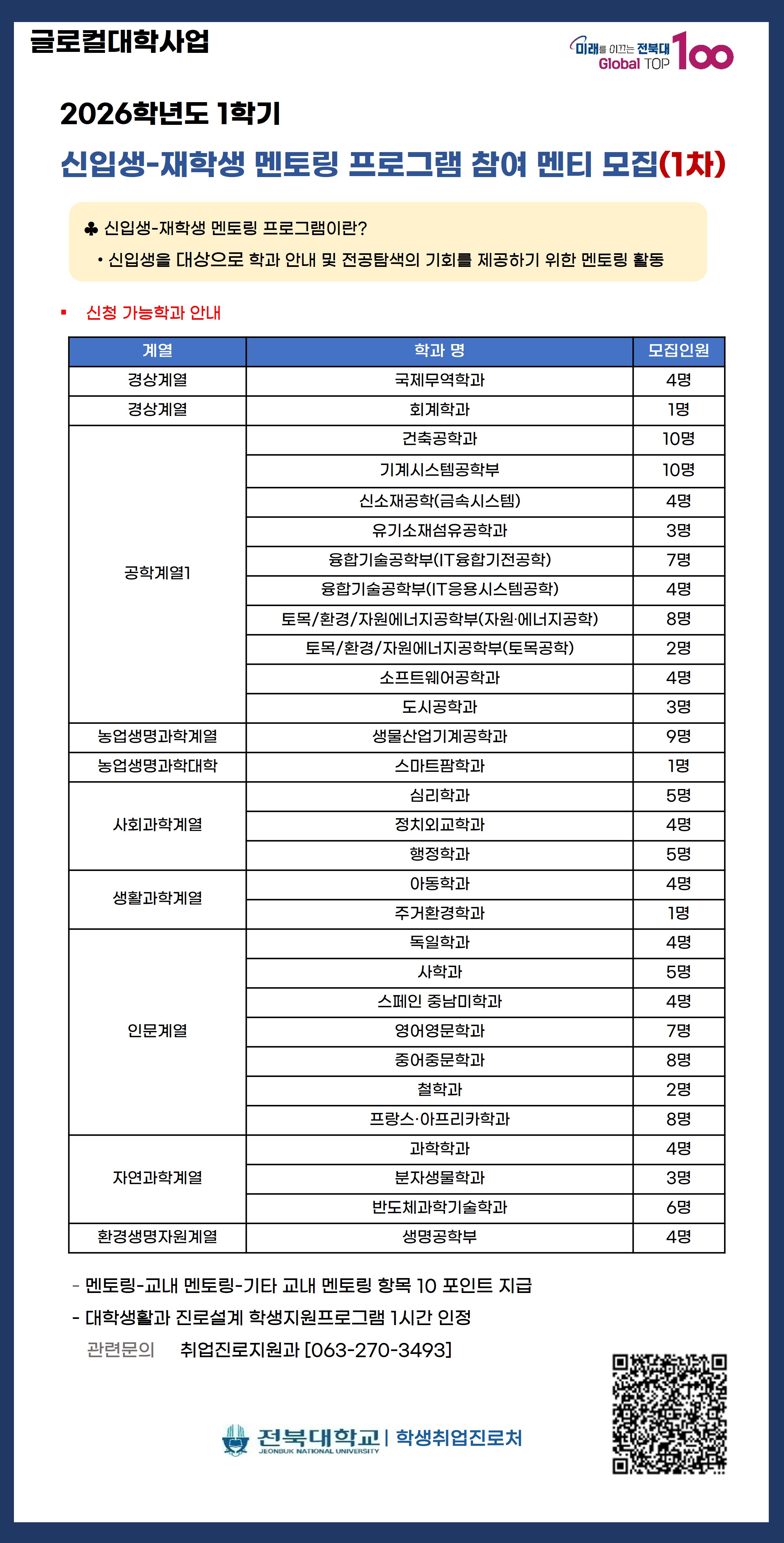 본 프로그램은 2026학년도 광역화 모집 대상 신입생에게 전공 탐색 기회를 제공하기 위해 개설된 멘토링 프로그램입니다.