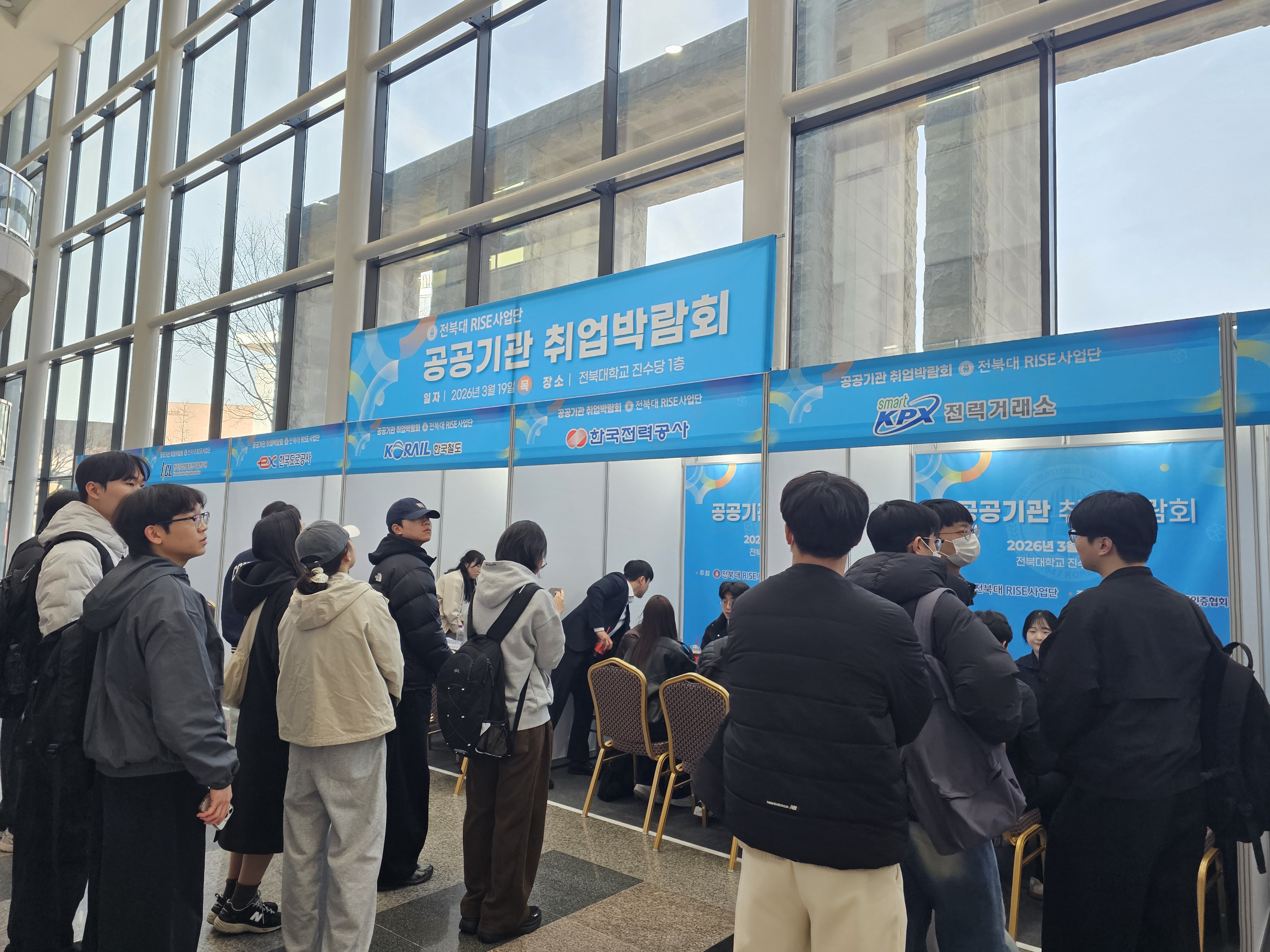 이어 19일 오전 열린 취업박람회에서는 한국전력공사, 한국도로공사, 한국철도공사, 한국남동발전, 전력거래소, 국가철도공단 등 주요 공공기관 인사담당자가 전북대 학생들과 1:1 채용 상담을 진행했다. 현직 담당자들은 기관별 직무 요건과 준비 전략을 직접 안내하며 학생들의 구체적인 진로 탐색을 지원했다.