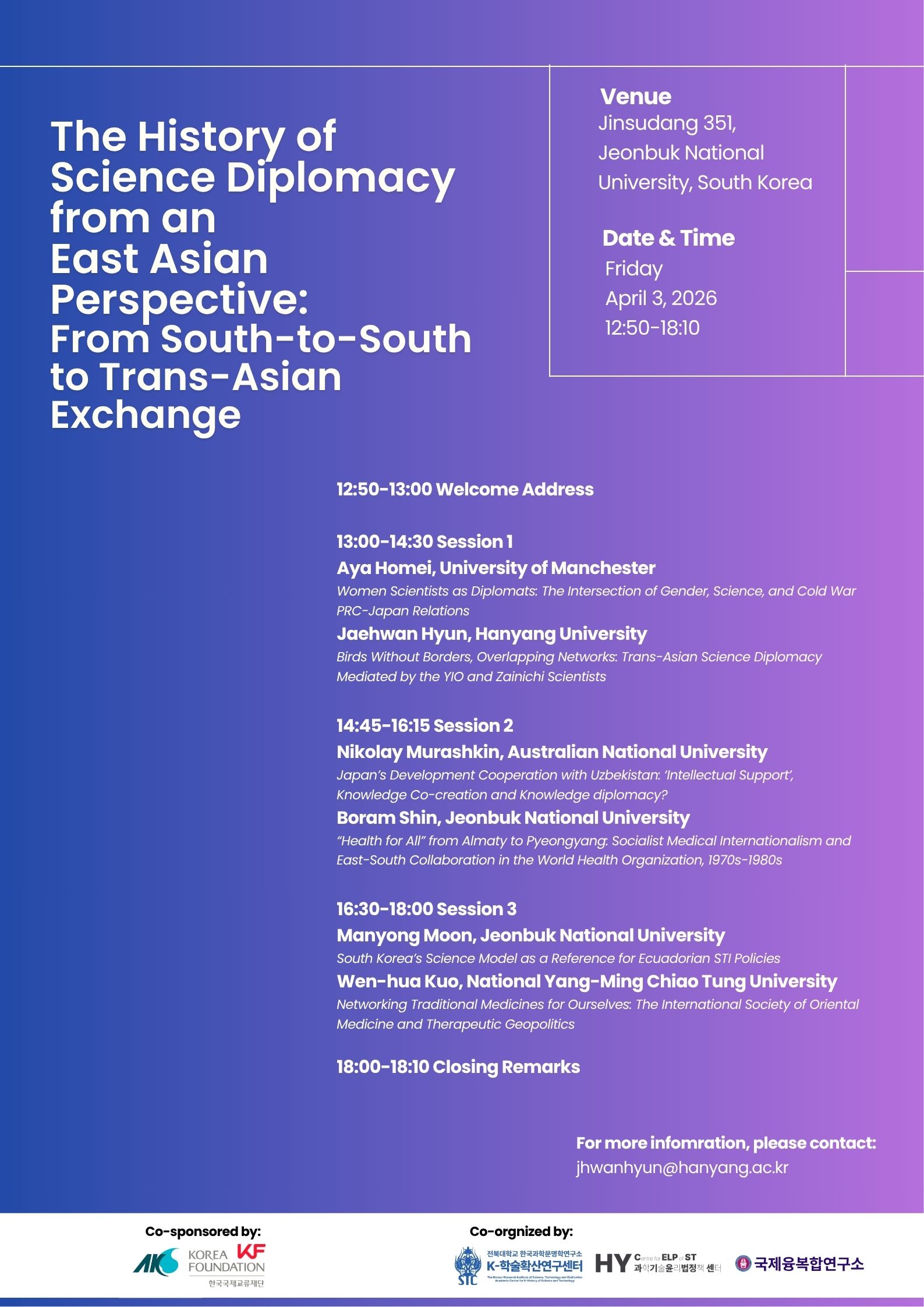Venue: Jinsudang 351, Jeonbuk National University, South Korea