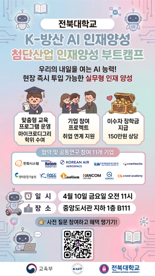 ◦ (주관기관) 교육부, KIAT, 전북대학교 첨단산업 인재양성 부트캠프 사업단, 전북대 국방산업연구소, 전북대 첨단방위산업학과