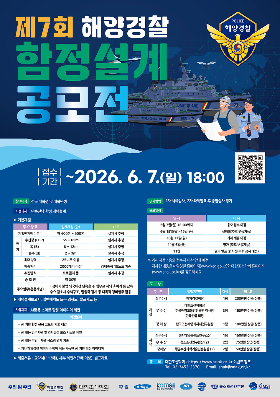 해양경찰청에서 「제7회 해양경찰 함정 설계공모전」을 개최합니다. 관심있는 학생들의 참여 바랍니다.