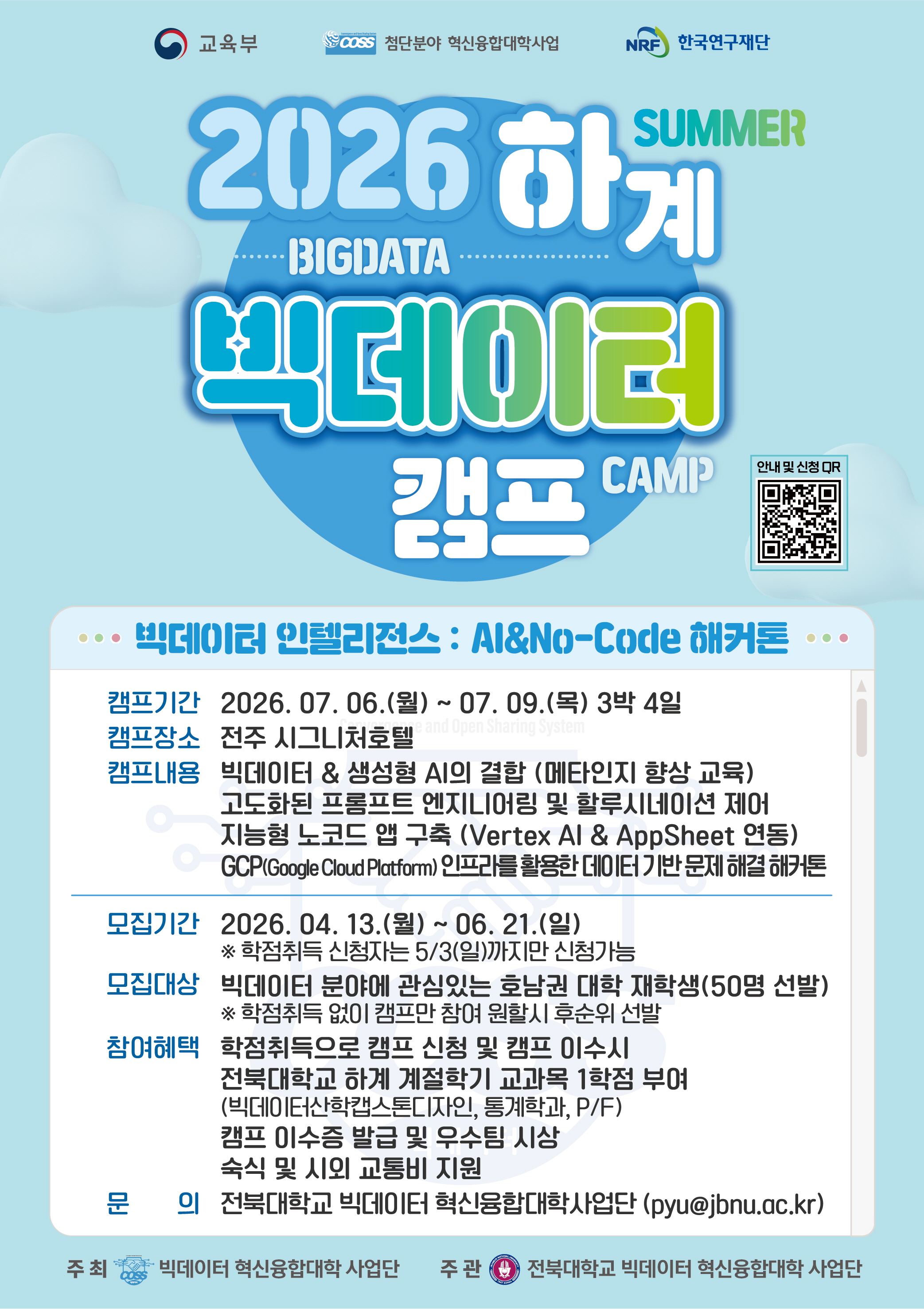★전북대학교 빅데이터 혁신융합대학 2026년 하계 빅데이터 캠프 참여학생 모집★