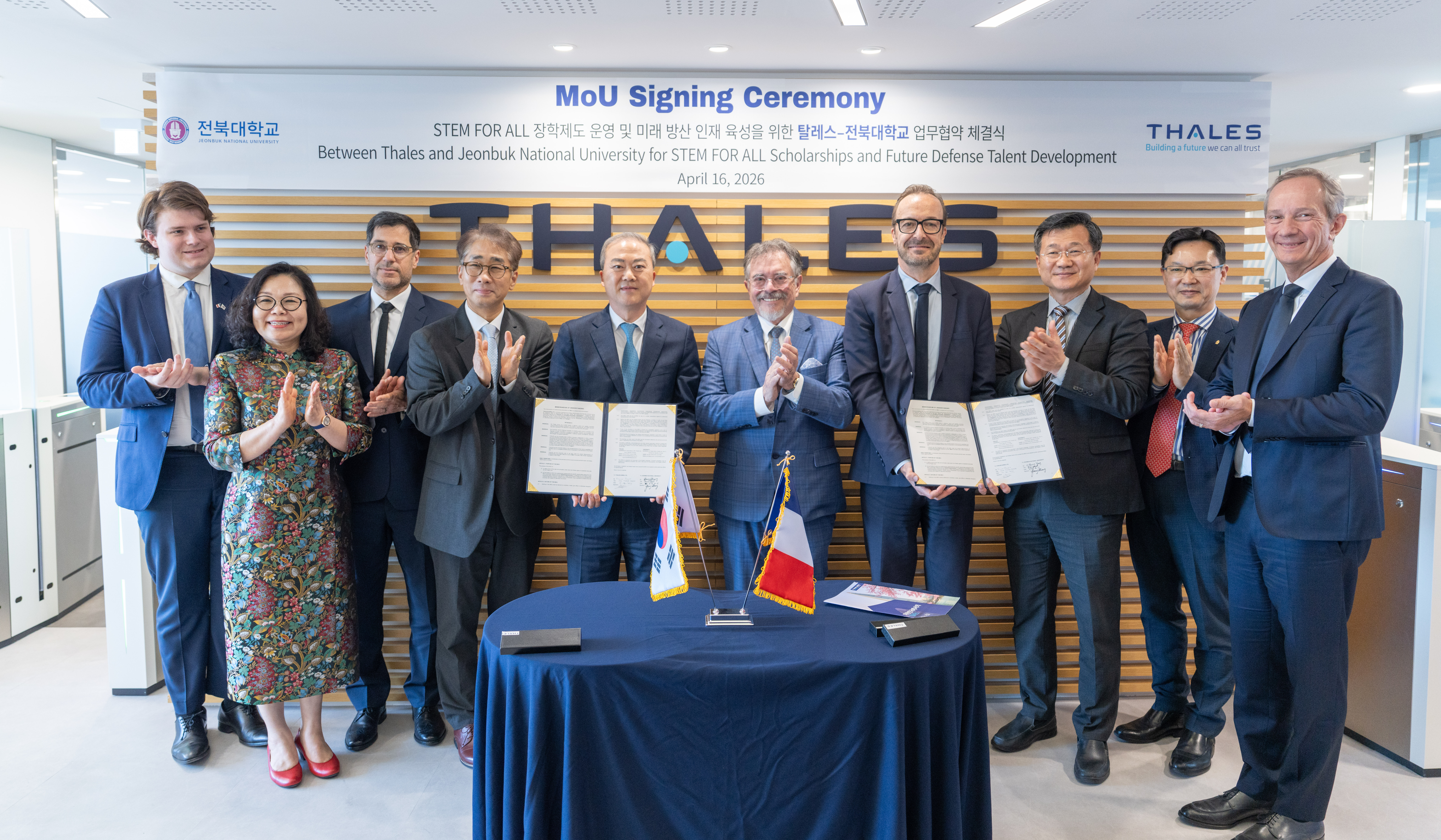 전북대는 4월 16일 탈레스와 양해각서(MOU)를 체결하고, STEM(과학·기술·공학·수학) 기반 미래 인재 육성과 산학협력 확대를 위한 중장기 협력체계를 구축했다고 밝혔다.