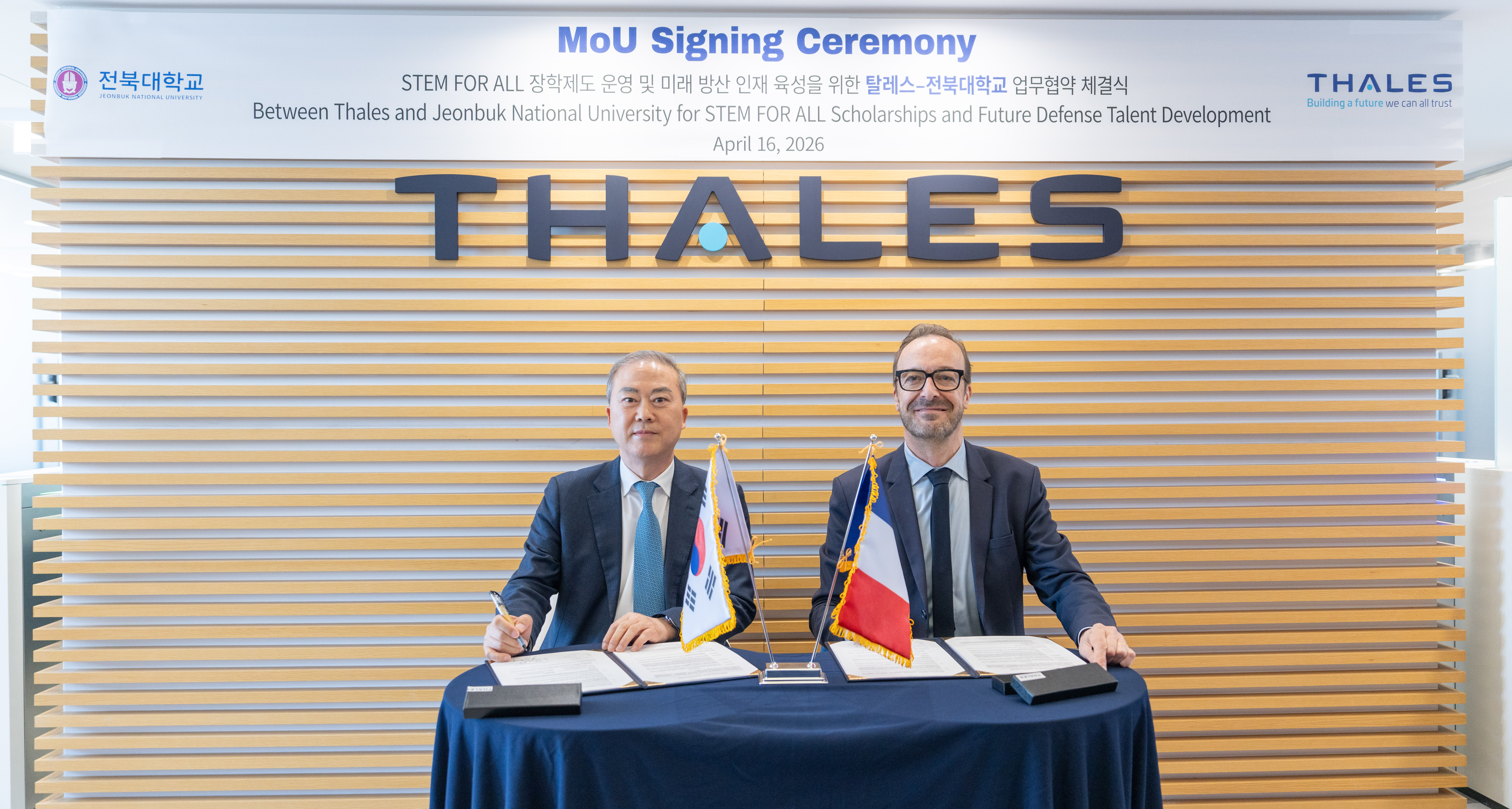 전북대학교가 유럽을 대표하는 방산기업 탈레스(Thales) 그룹과 손잡고 글로벌 방위산업 및 첨단기술 인재 양성을 위한 전략적 협력에 나섰다.