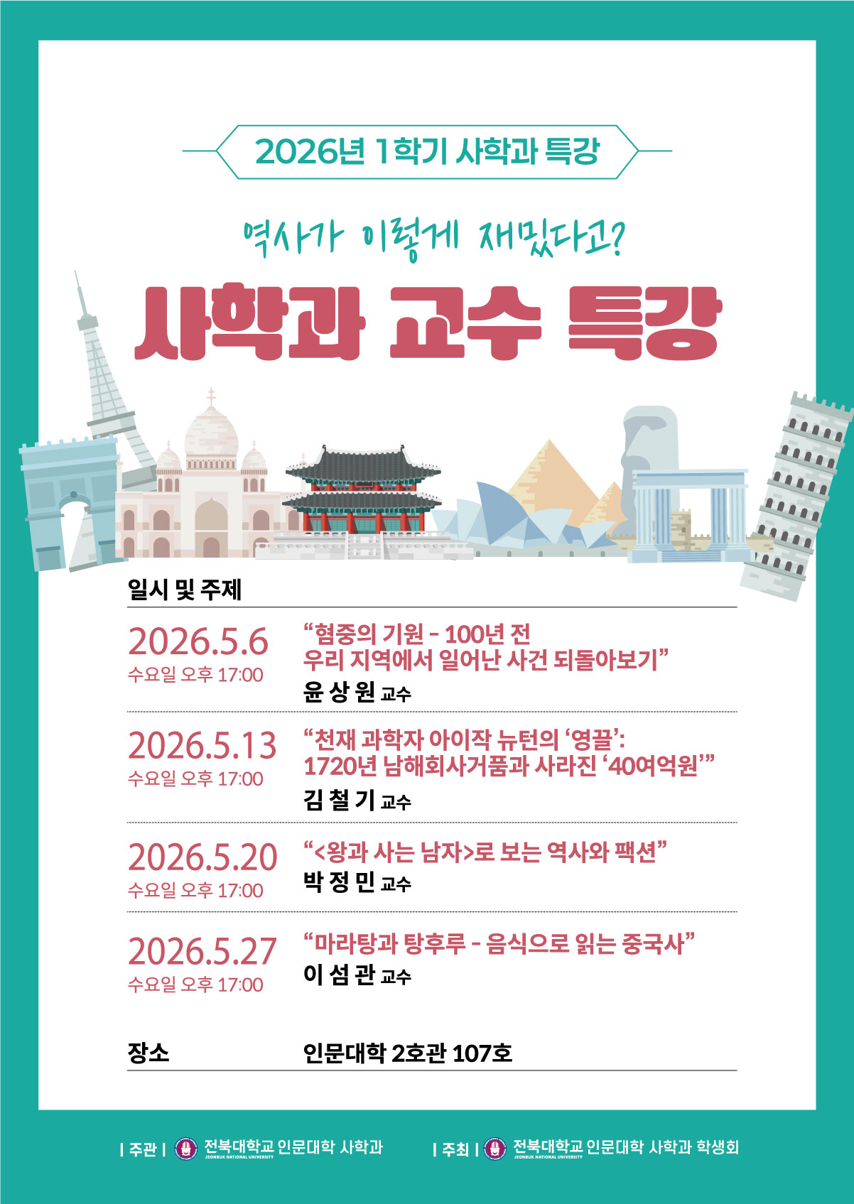 우리 사학과에서는 5월 한 달간 교수님 특강이 진행될 예정입니다.