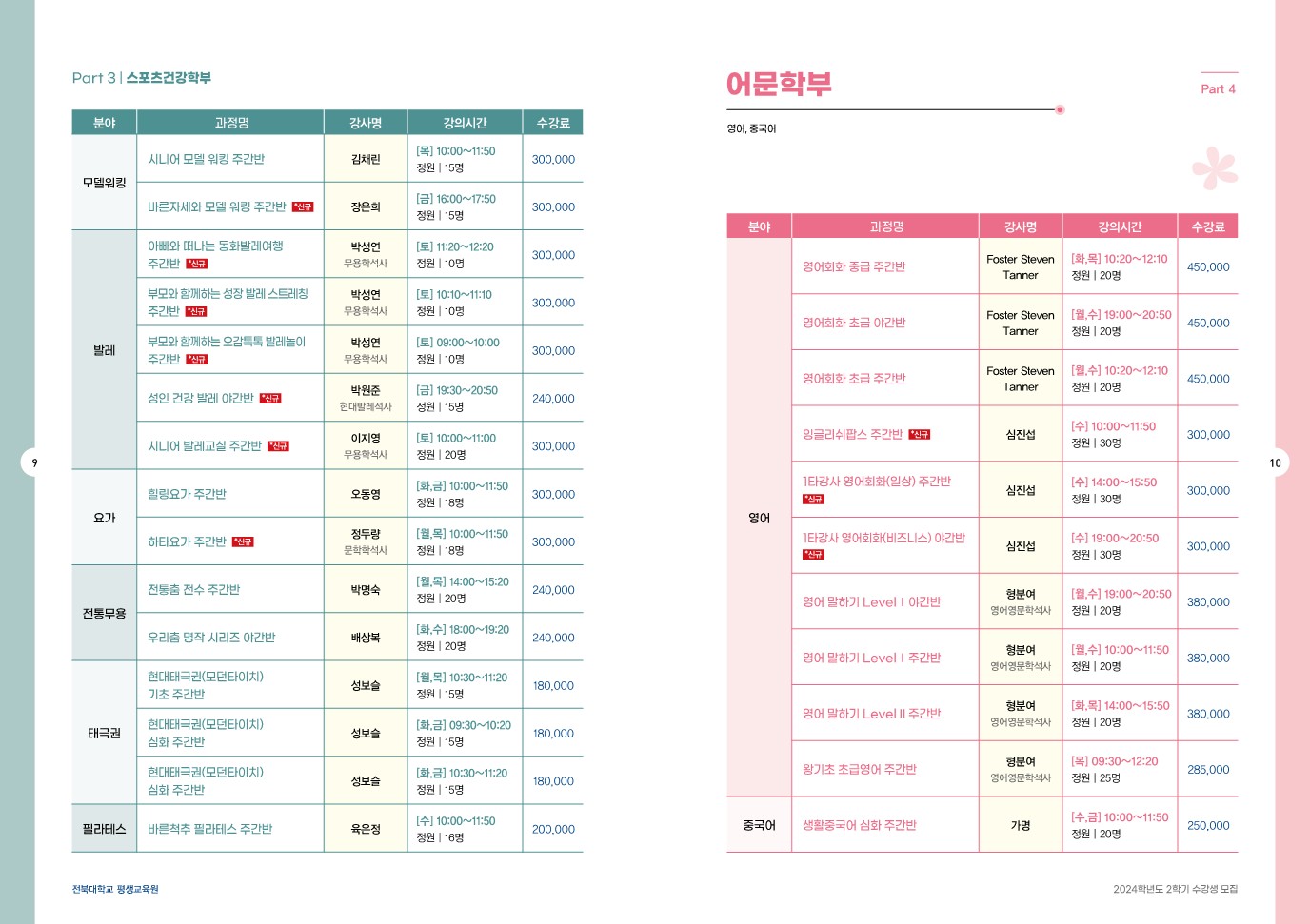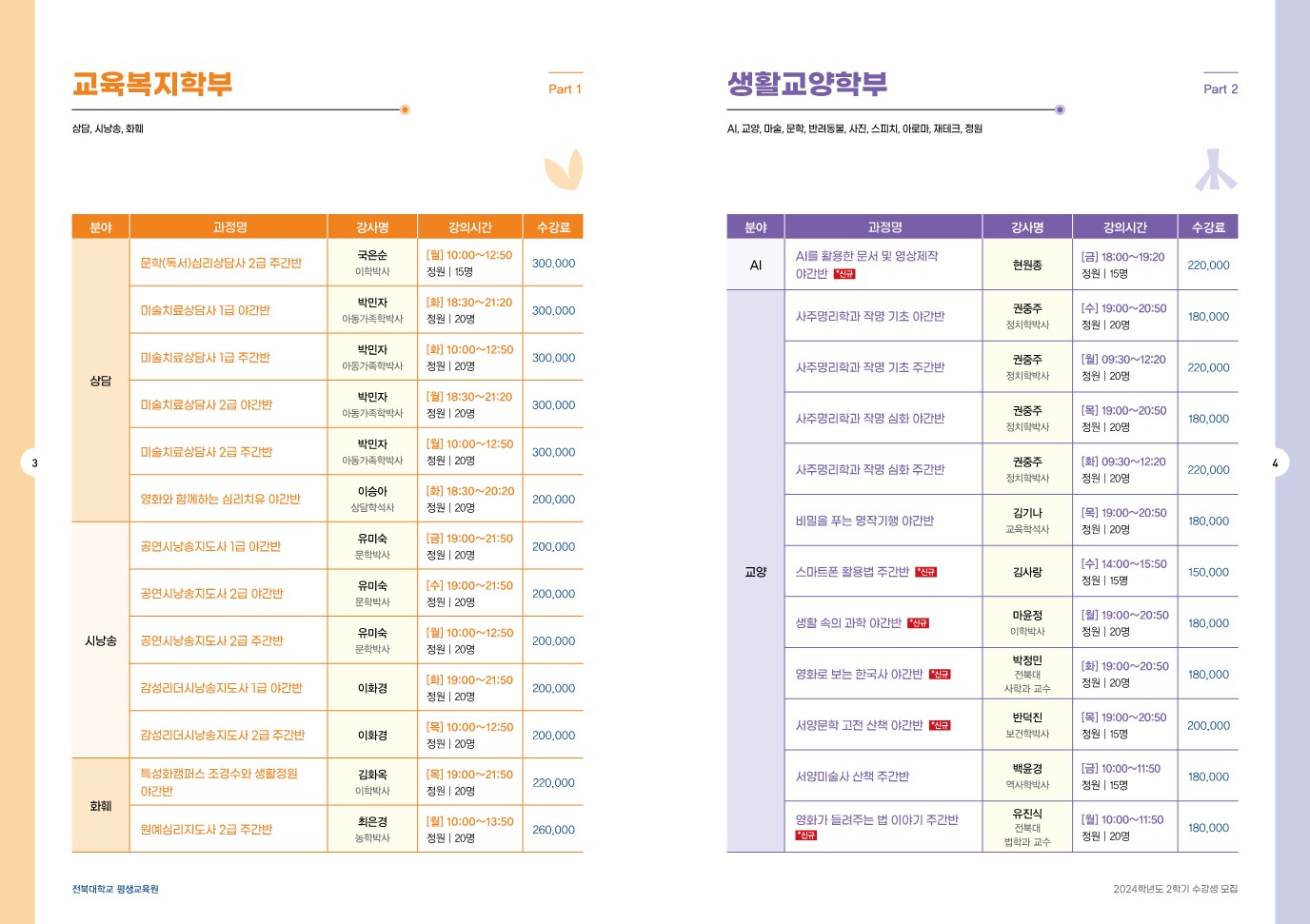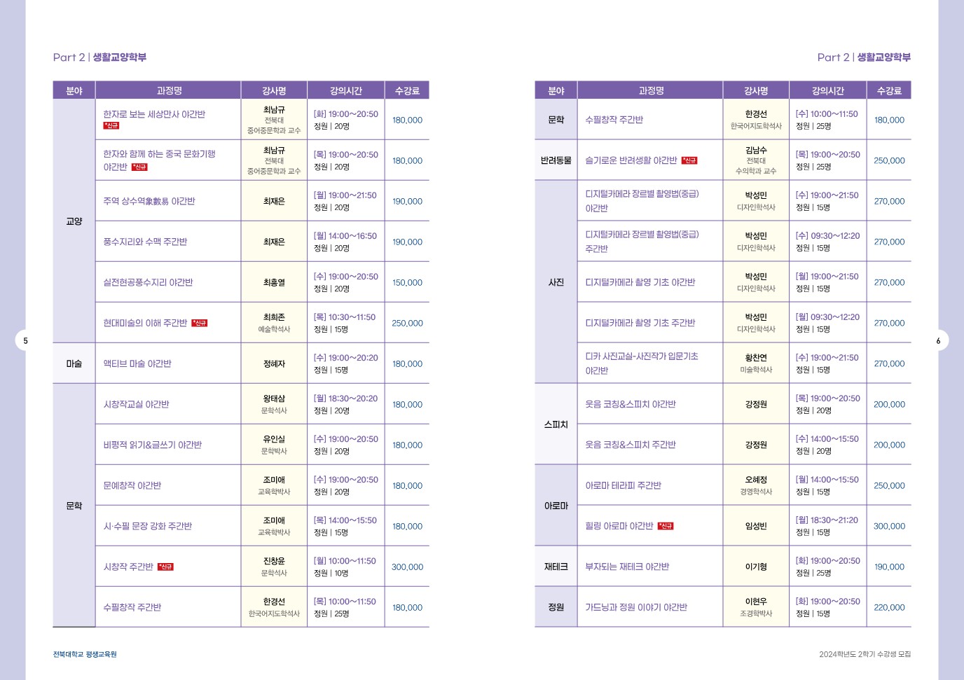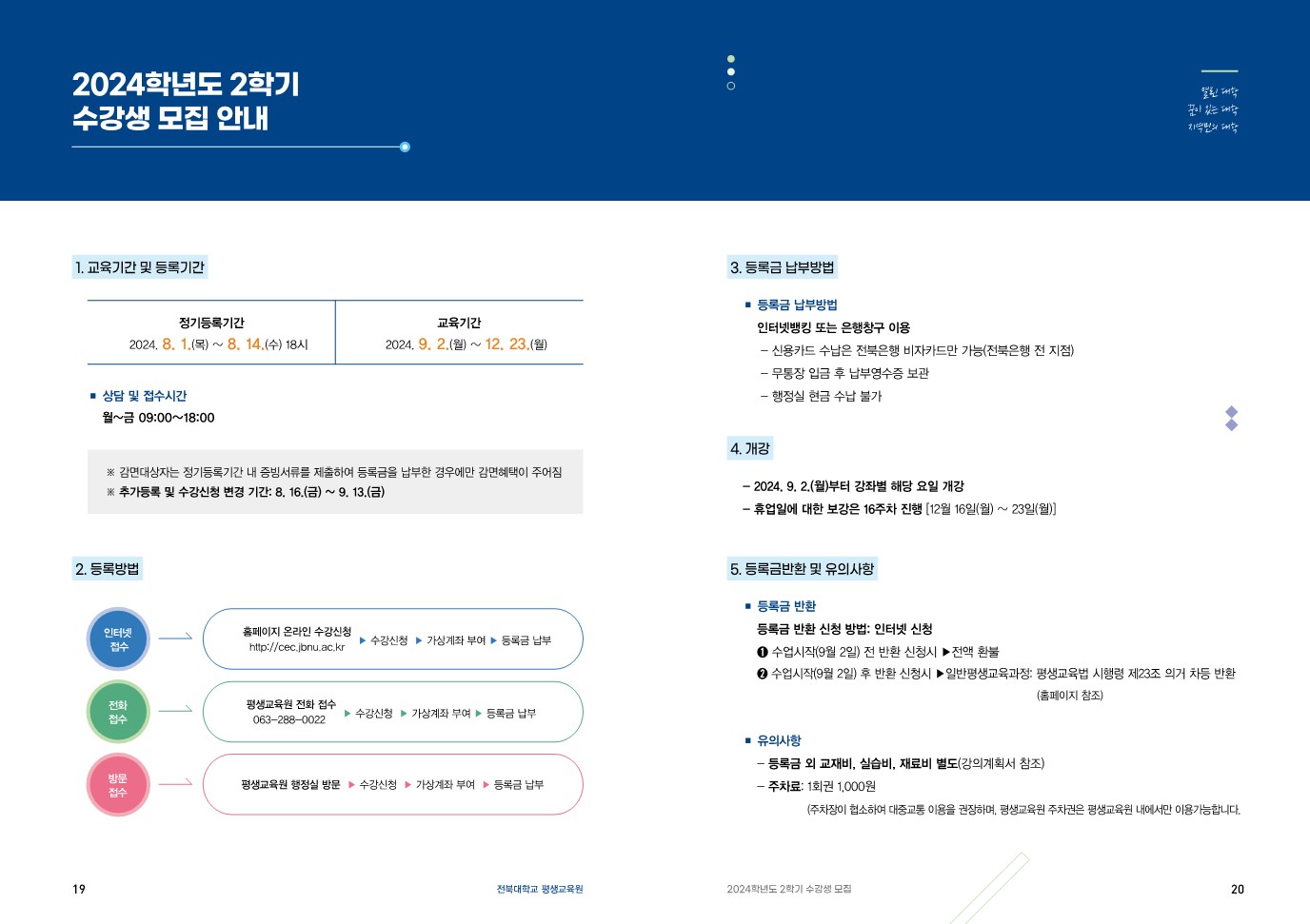 2024학년도 2학기 수강생을 붙임과 같이 모집합니다.