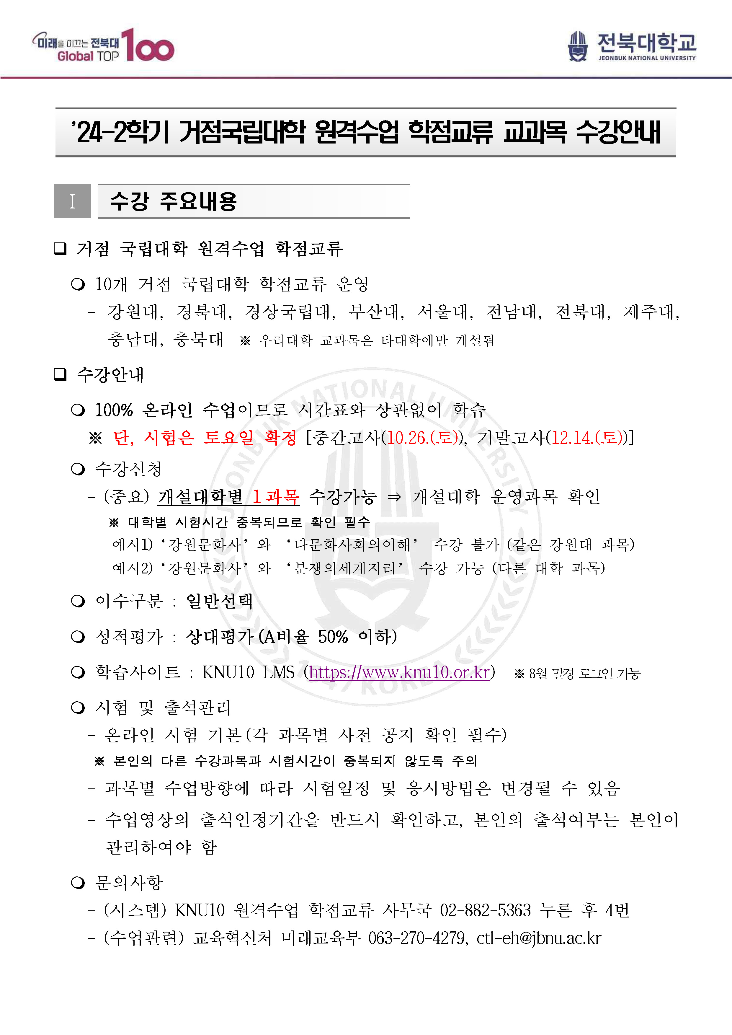 '24-2학기 KNU10 원격수업 학점교류 교과목 수강안내.pdf (448.3KB)