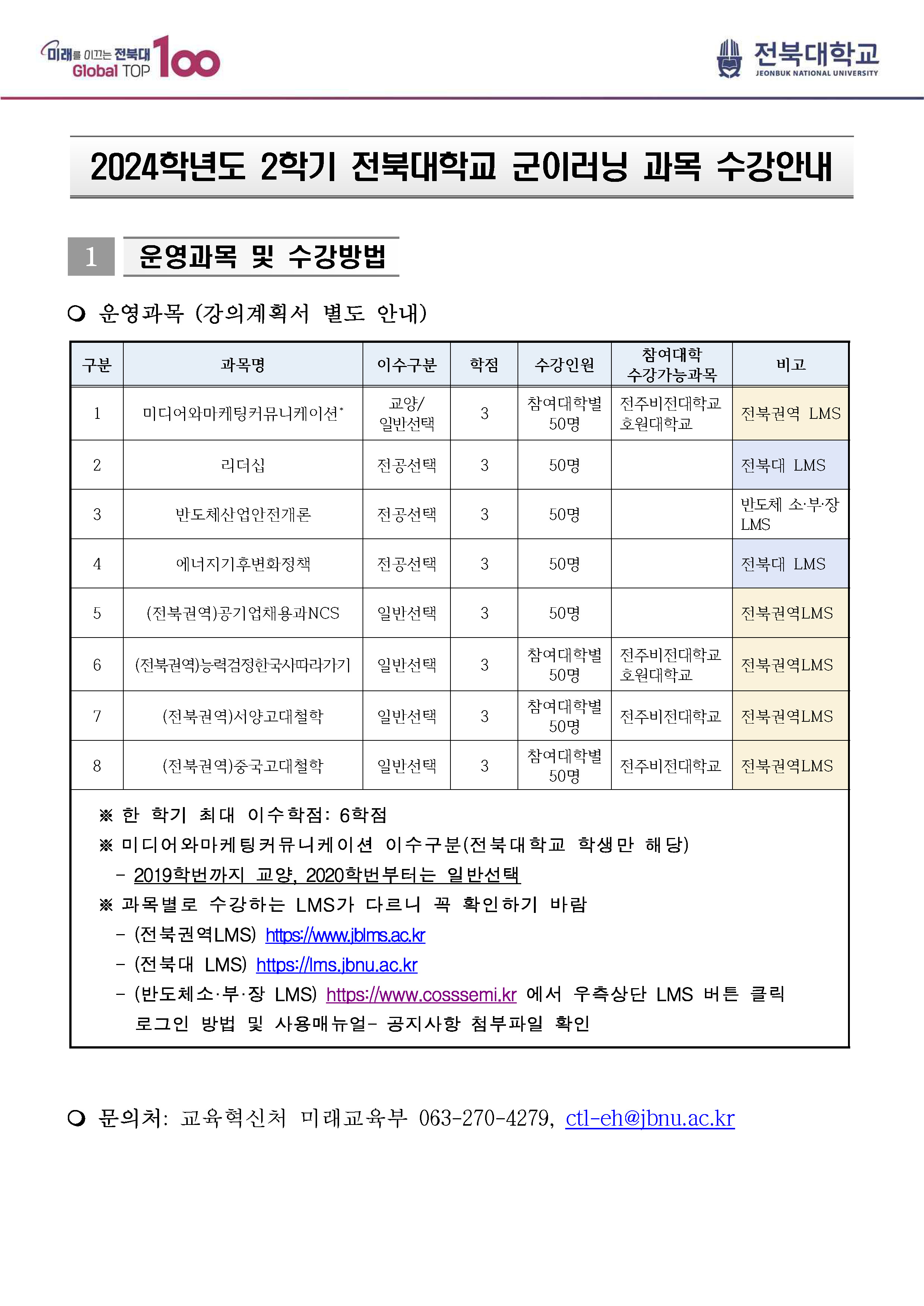 '24학년도 2학기 전북대학교 군이러닝 교과목 및 수강안내_240814.pdf (159.5KB)