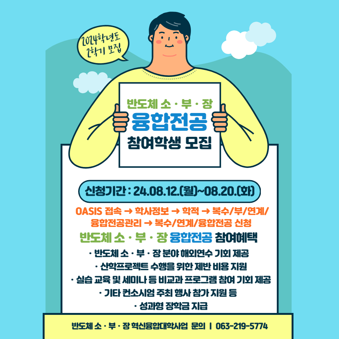 반도체 소재/부품/장비 융합전공 이수대상자를 모집합니다.