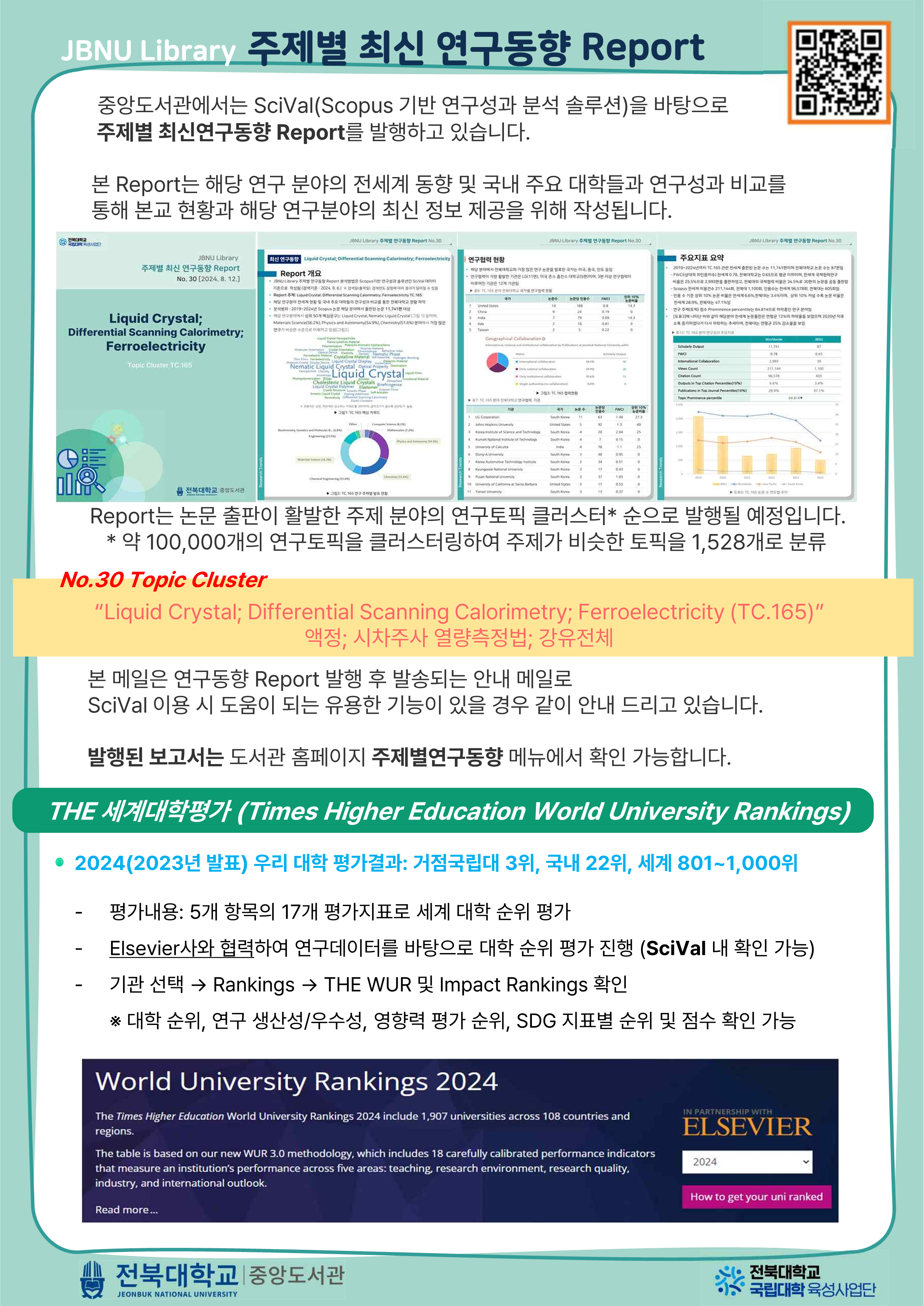 SciVal 이용문의: 중앙도서관 학술연구지원팀 063) 270-4407 / 교육 4408