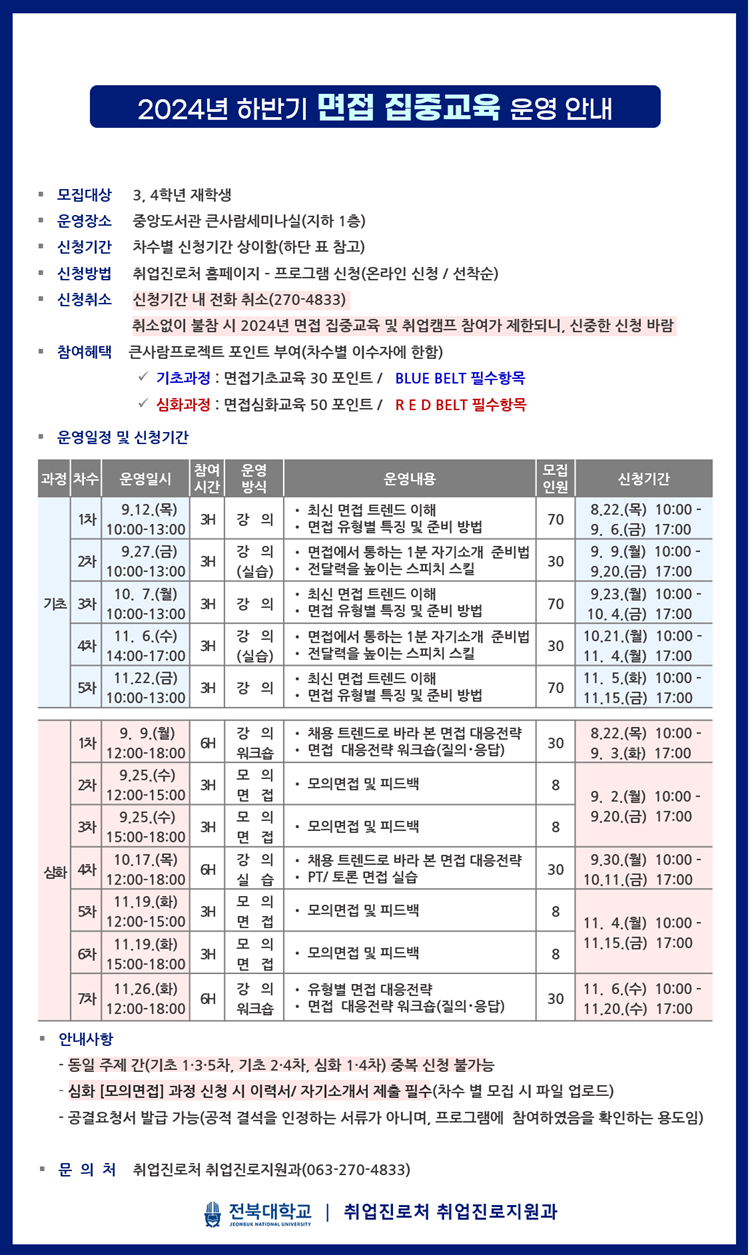 2024년 하반기 면접 집중교육 안내(전체일정)