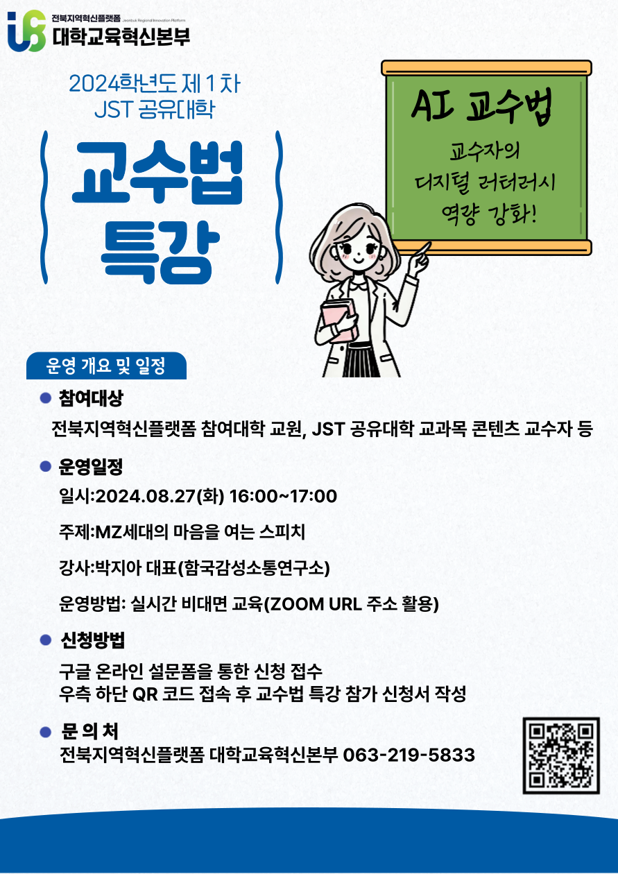 - 대상: JST 공유대학 교원, 전북지역혁신플랫폼 참여대학 교원