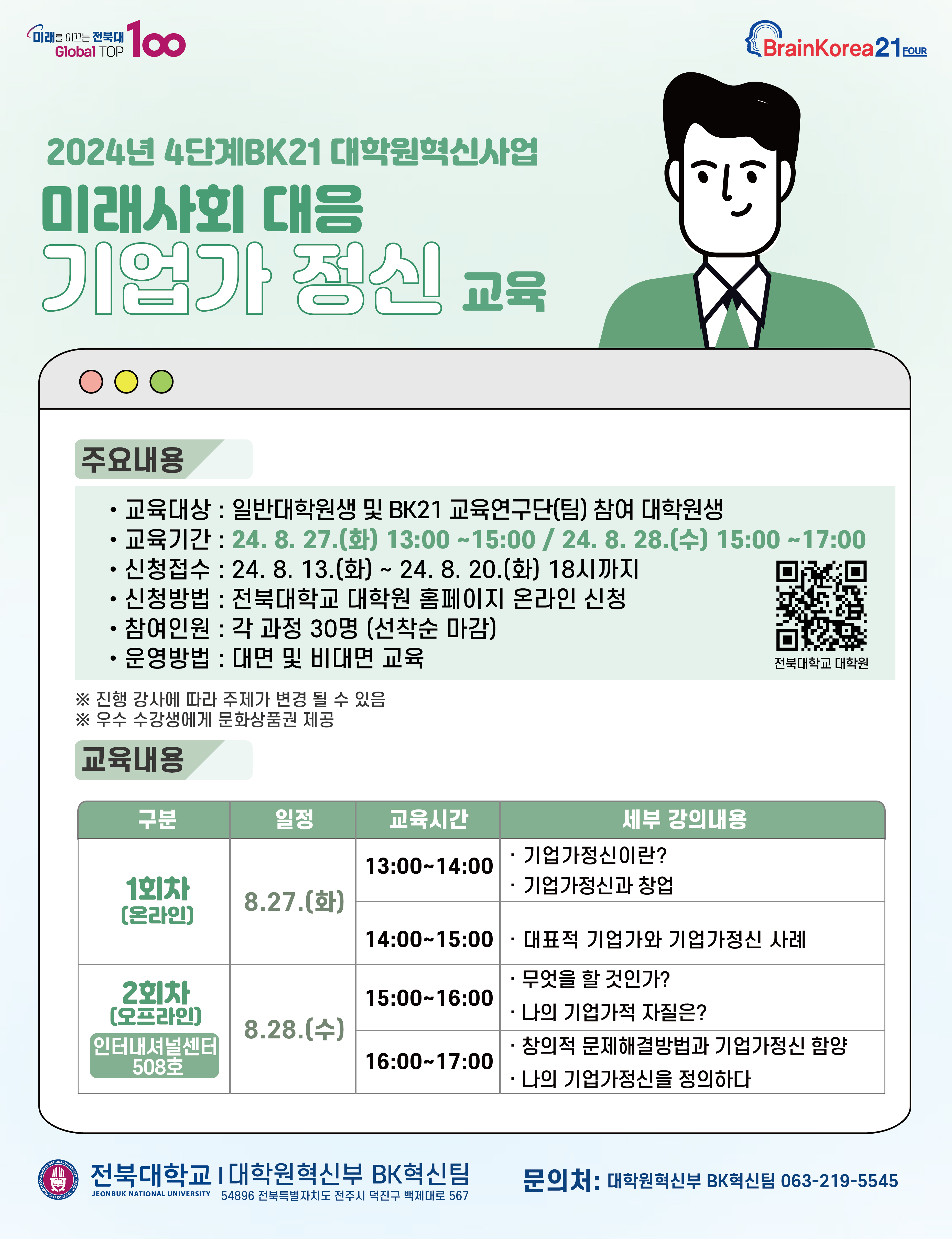 * 강연주제: 2024년 JBNU 미래사회 대응 교육 - 기업가정신과 창업 2부