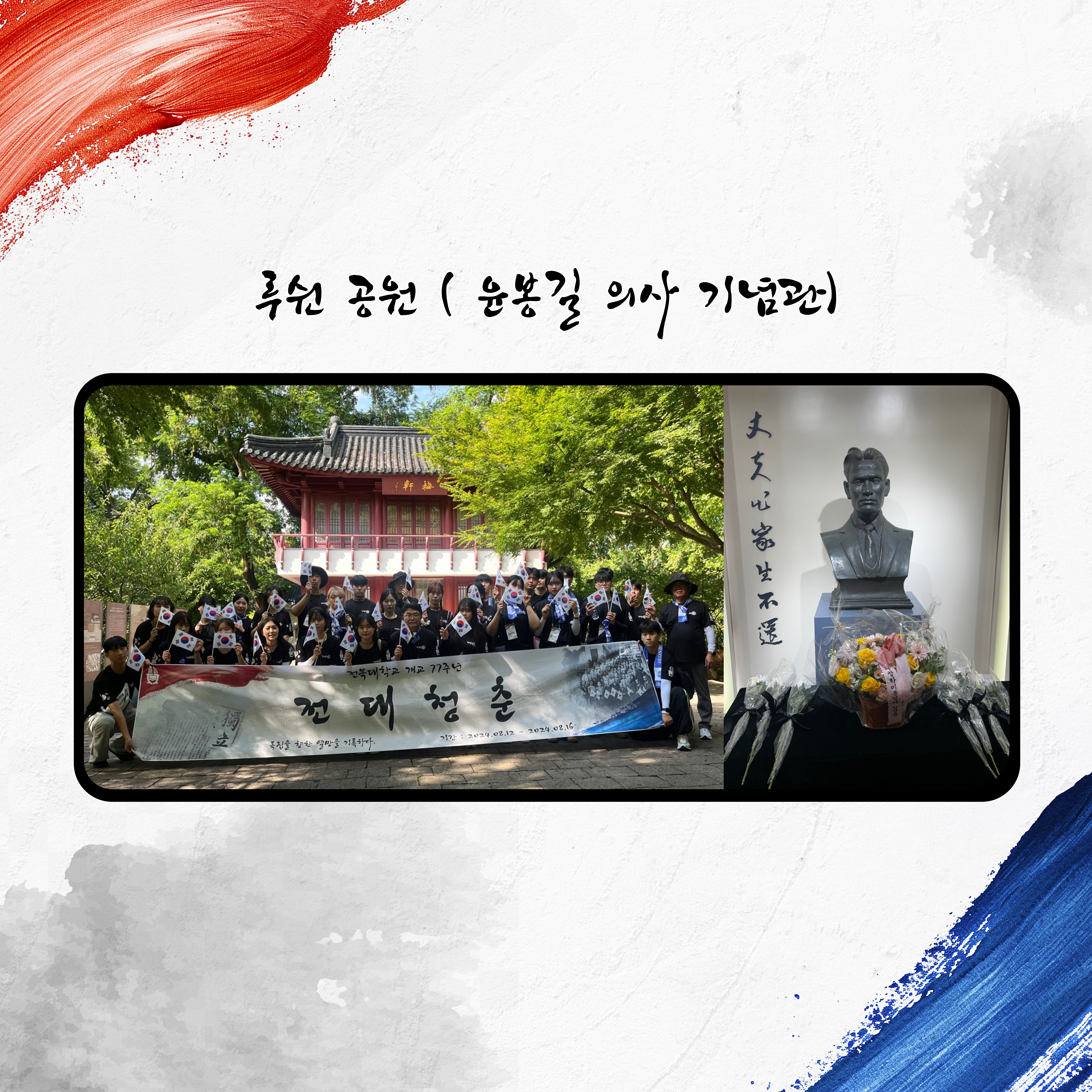 5일간의 전대청춘 일정을 통해 대한민국 독립을 위해 헌신한 독립운동가의 숨결을 느낄 수 있었습니다.