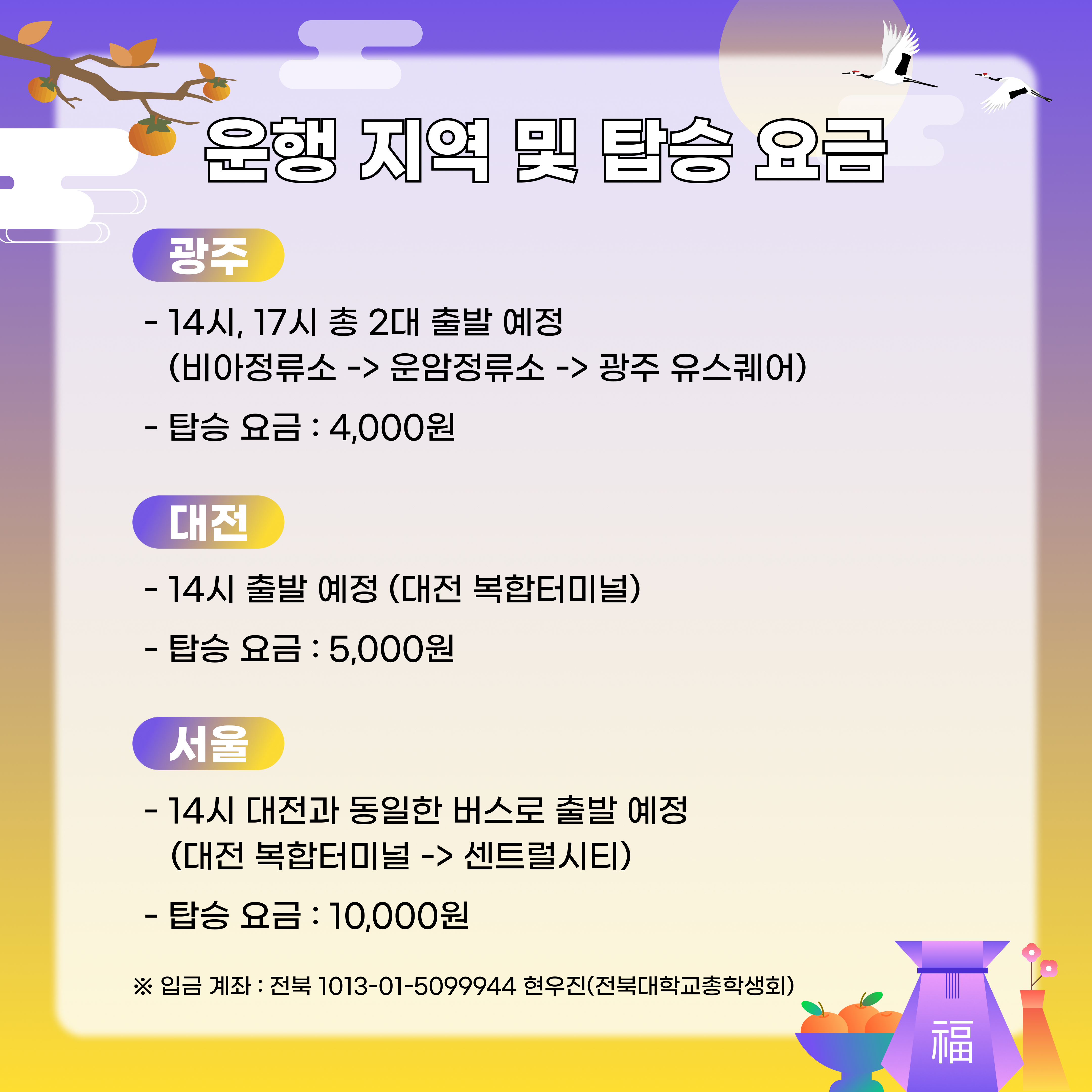 - 입금 계좌 : 전북 1013-01-5099944 현우진(전북대학교총학생회)