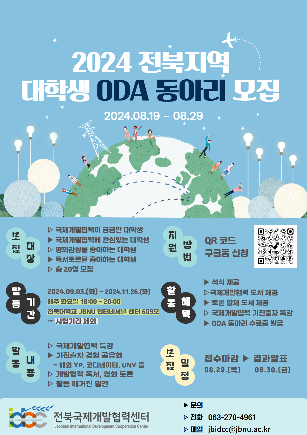 [전북국제개발협력센터] 2024년 하반기 전북지역 대학생 ODA 동아리 12기 모집 [D-1]