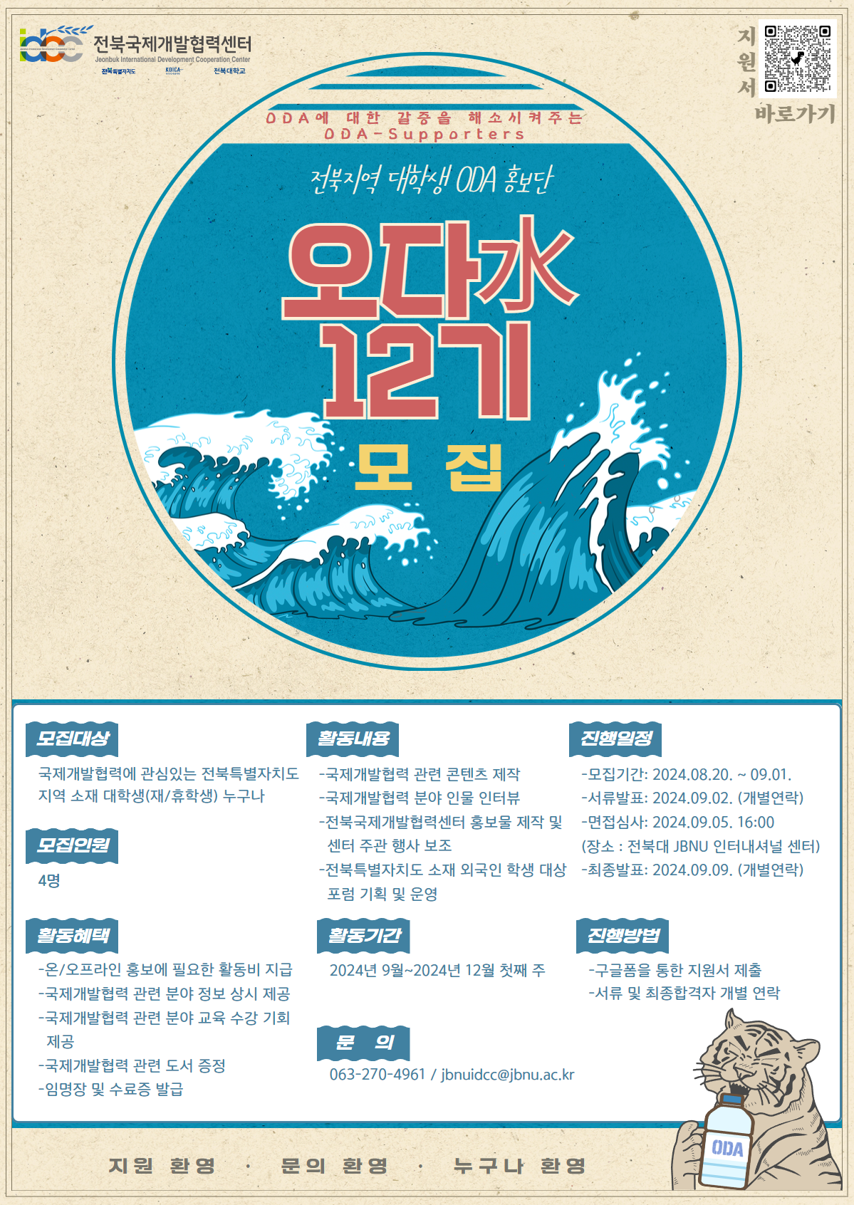 전북국제개발협력센터에서 대학생 ODA 홍보단 ODA水 12기를 모집합니다!