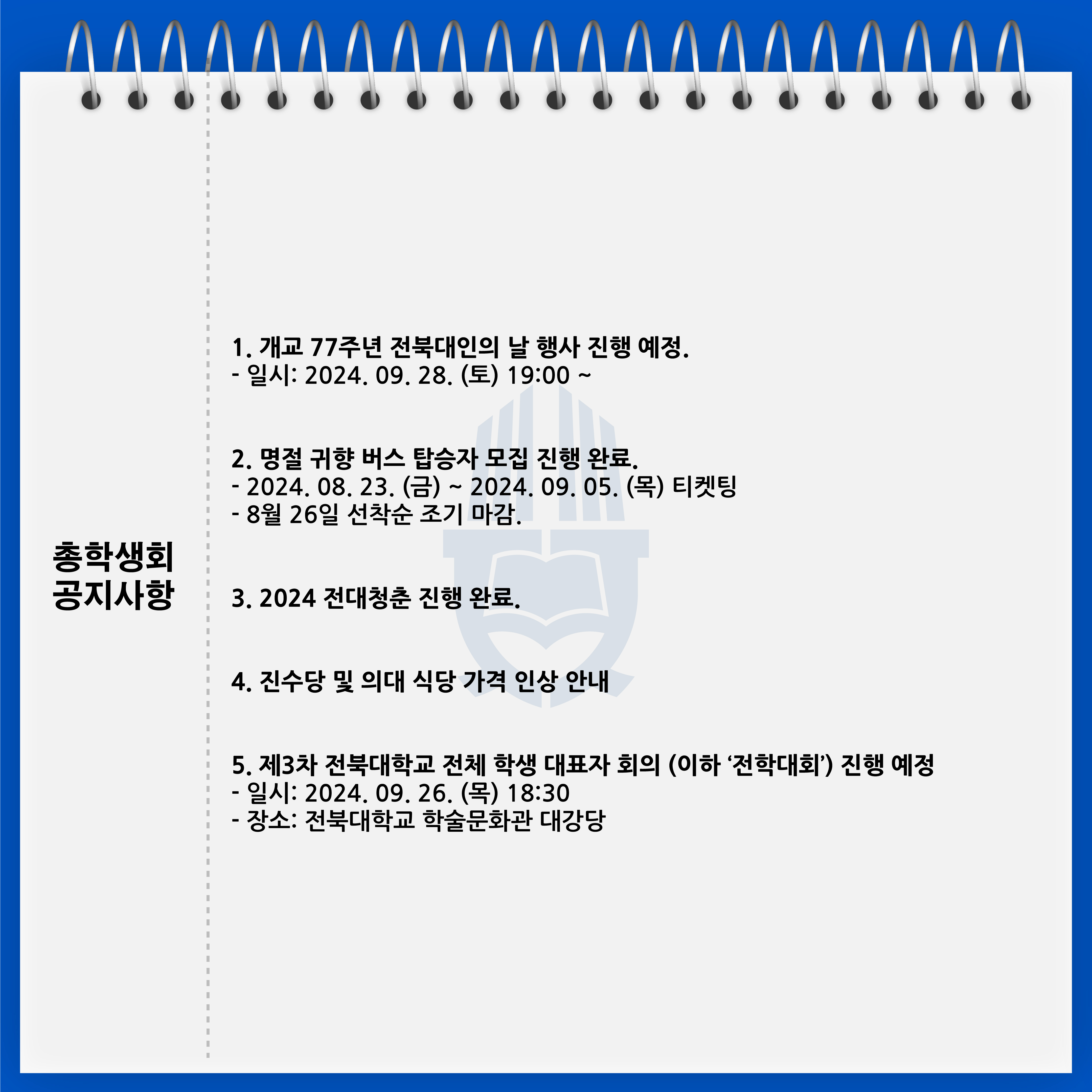안녕하세요! 전북대학교 제56대 대로 총학생회입니다.