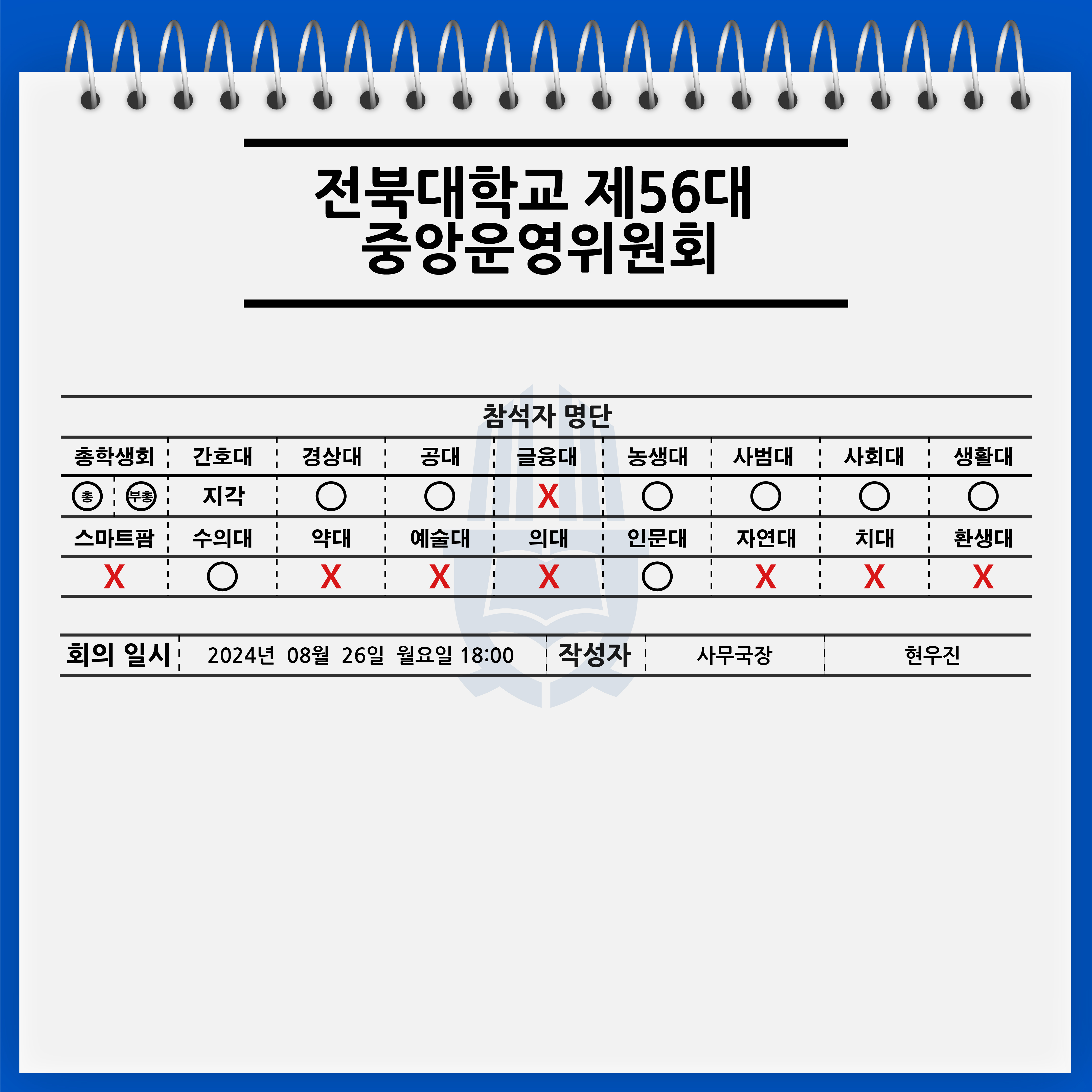 [전북대학교 제56대 중앙운영위원회 15차 회의록]