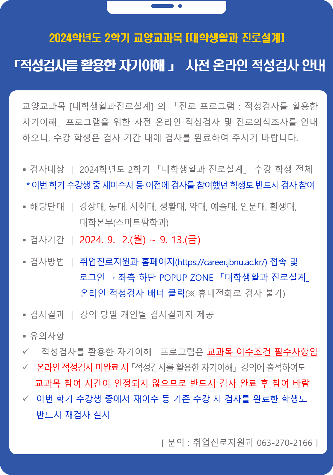 2024학년도_2학기_대학생활과진로설계_진로프로그램_온라인적성검사_안내.pdf (2.7MB)