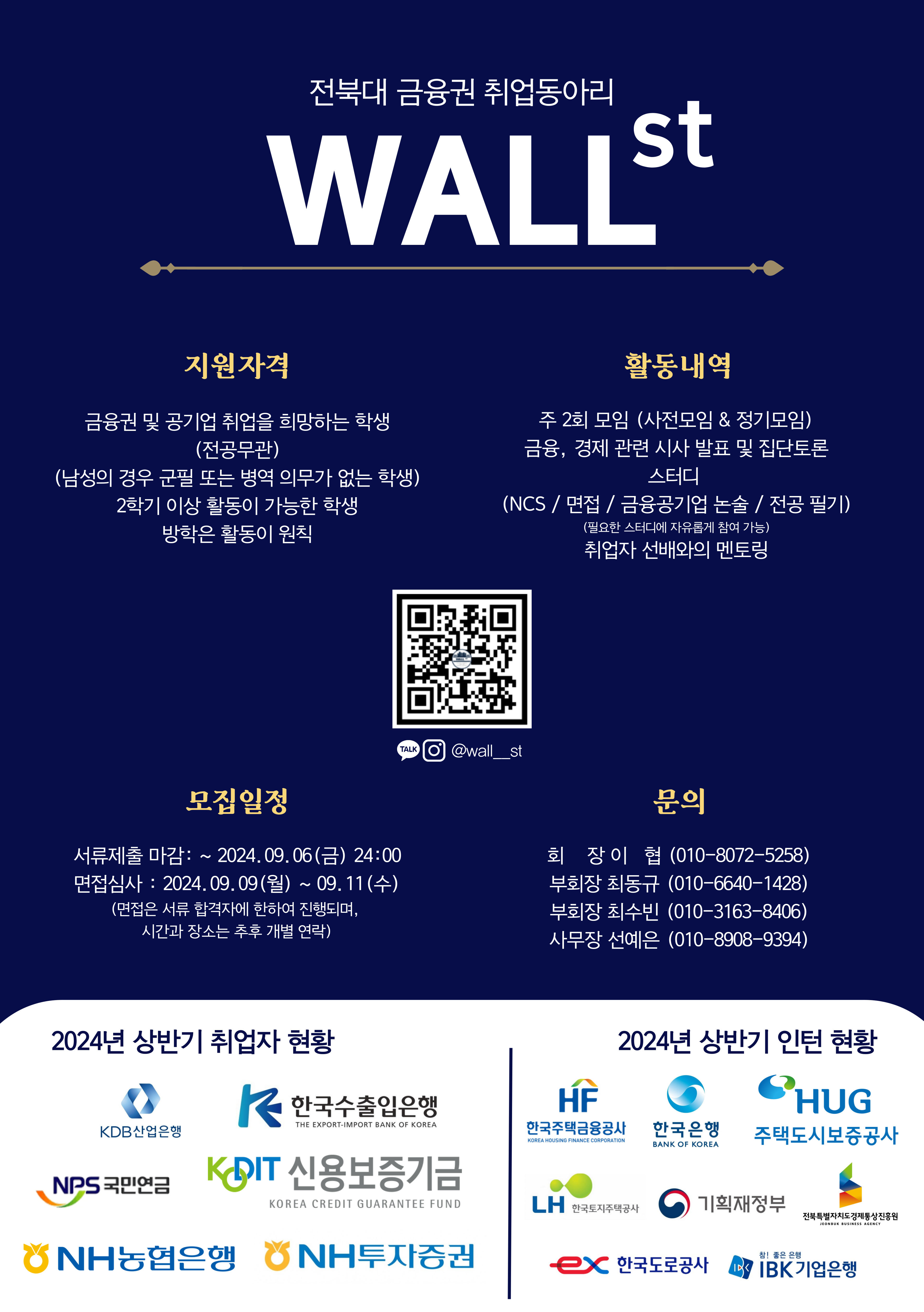 전북대학교 금융권 취업동아리 월가에서 신입기수 28기를 모집합니다!