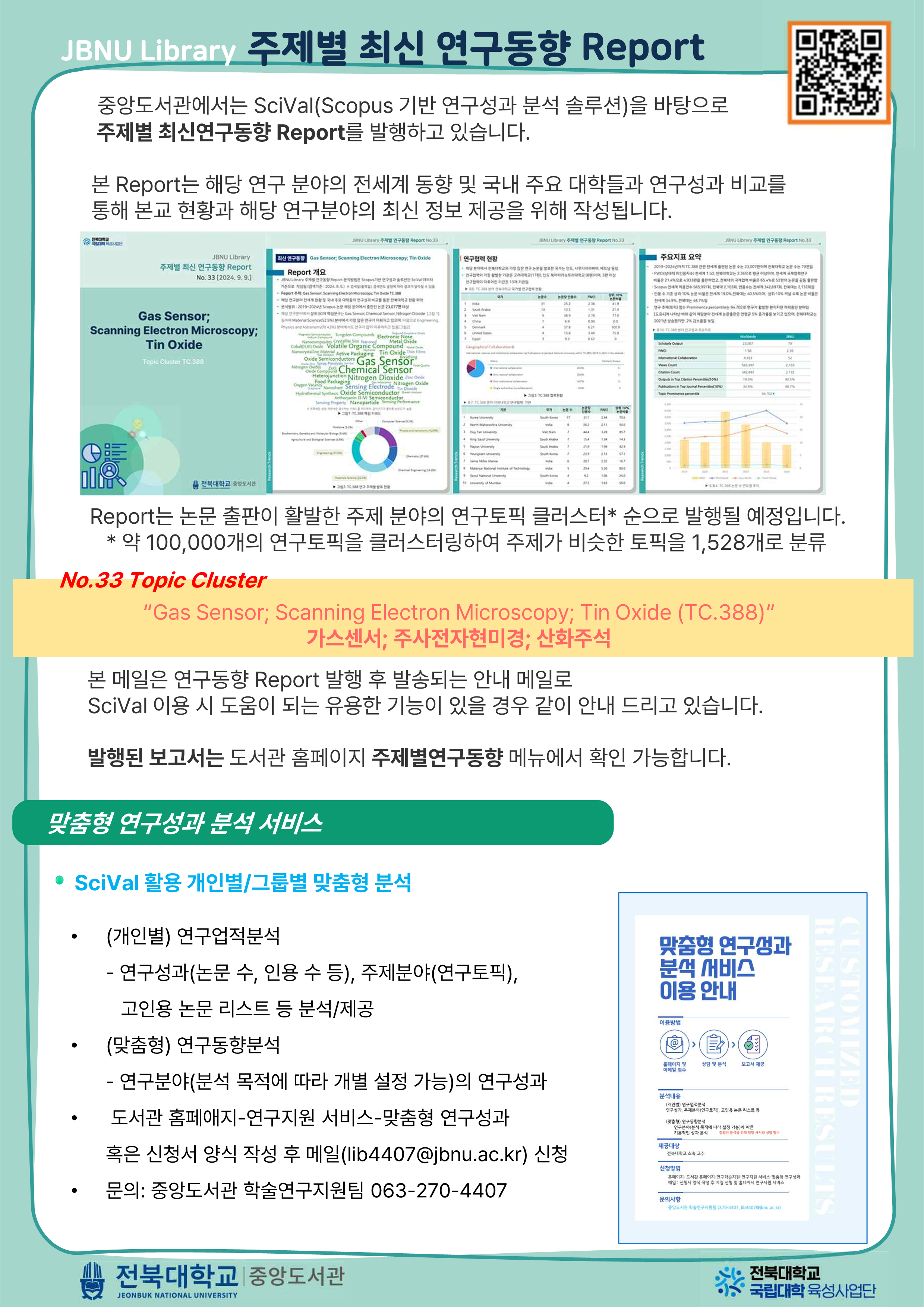 SciVal 이용문의: 중앙도서관 학술연구지원팀 063) 270-4407 / 교육 4408