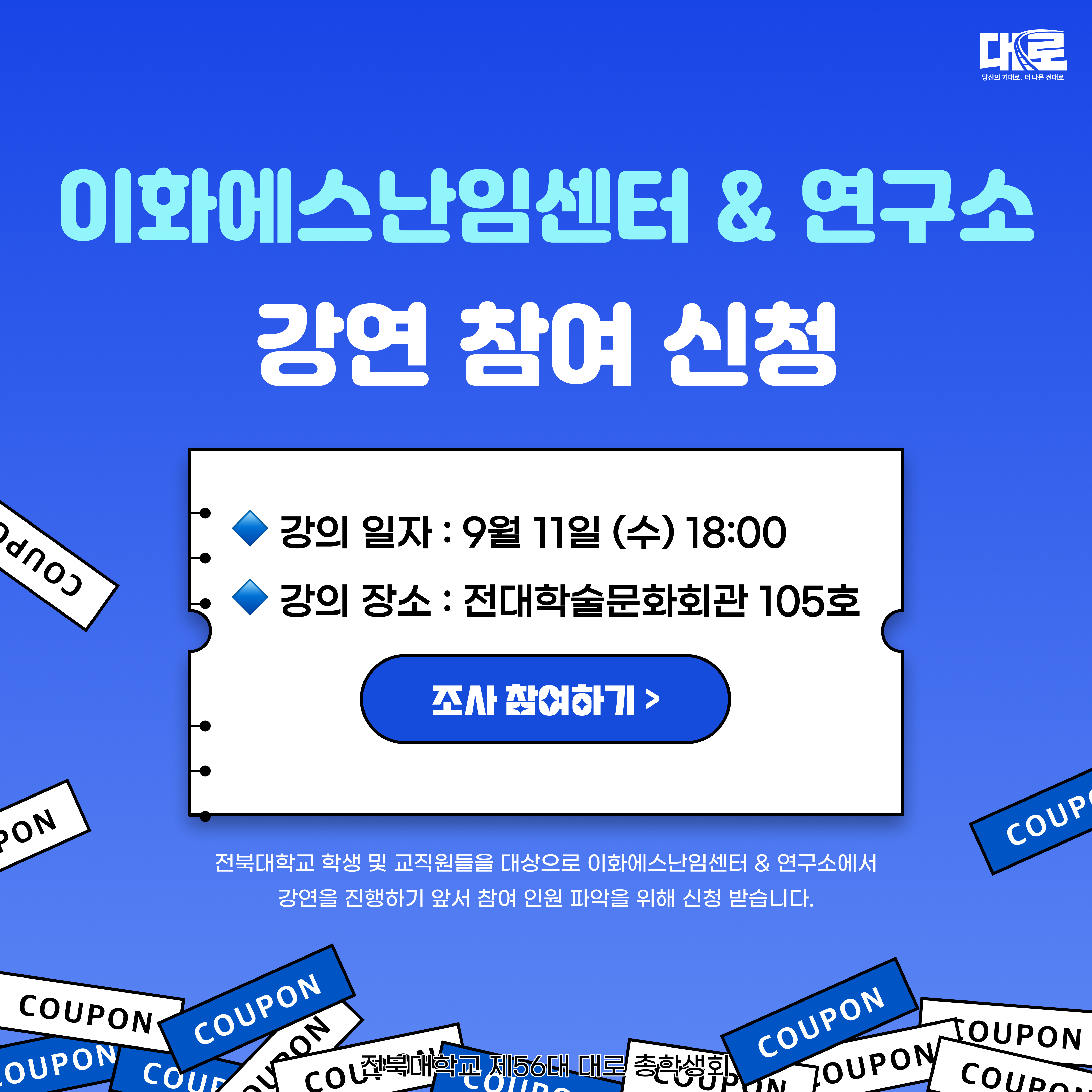 2학기 개강 시기에 맞추어 전북대학교 학생 및 교직원들을 대상으로 강연을 진행 합니다!
