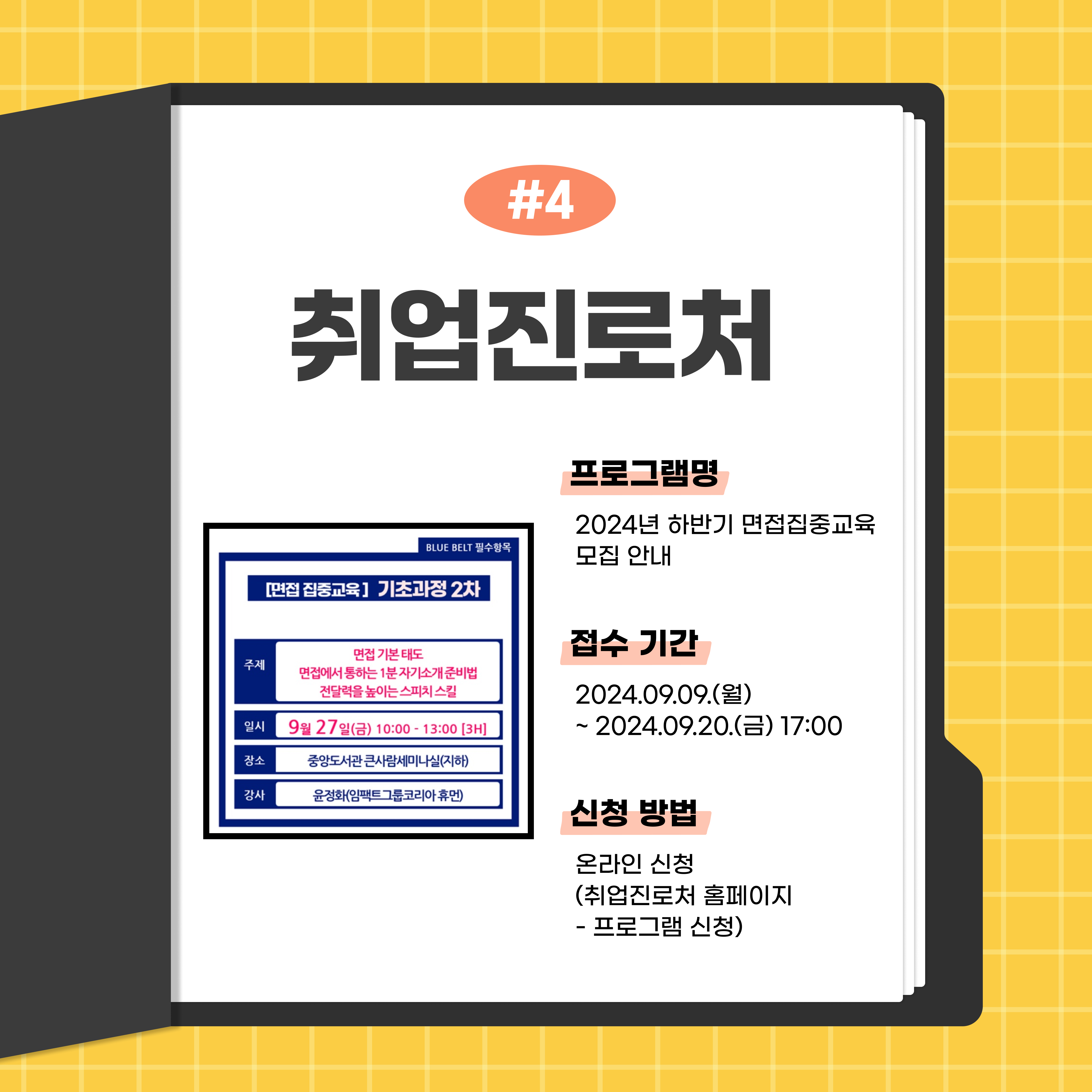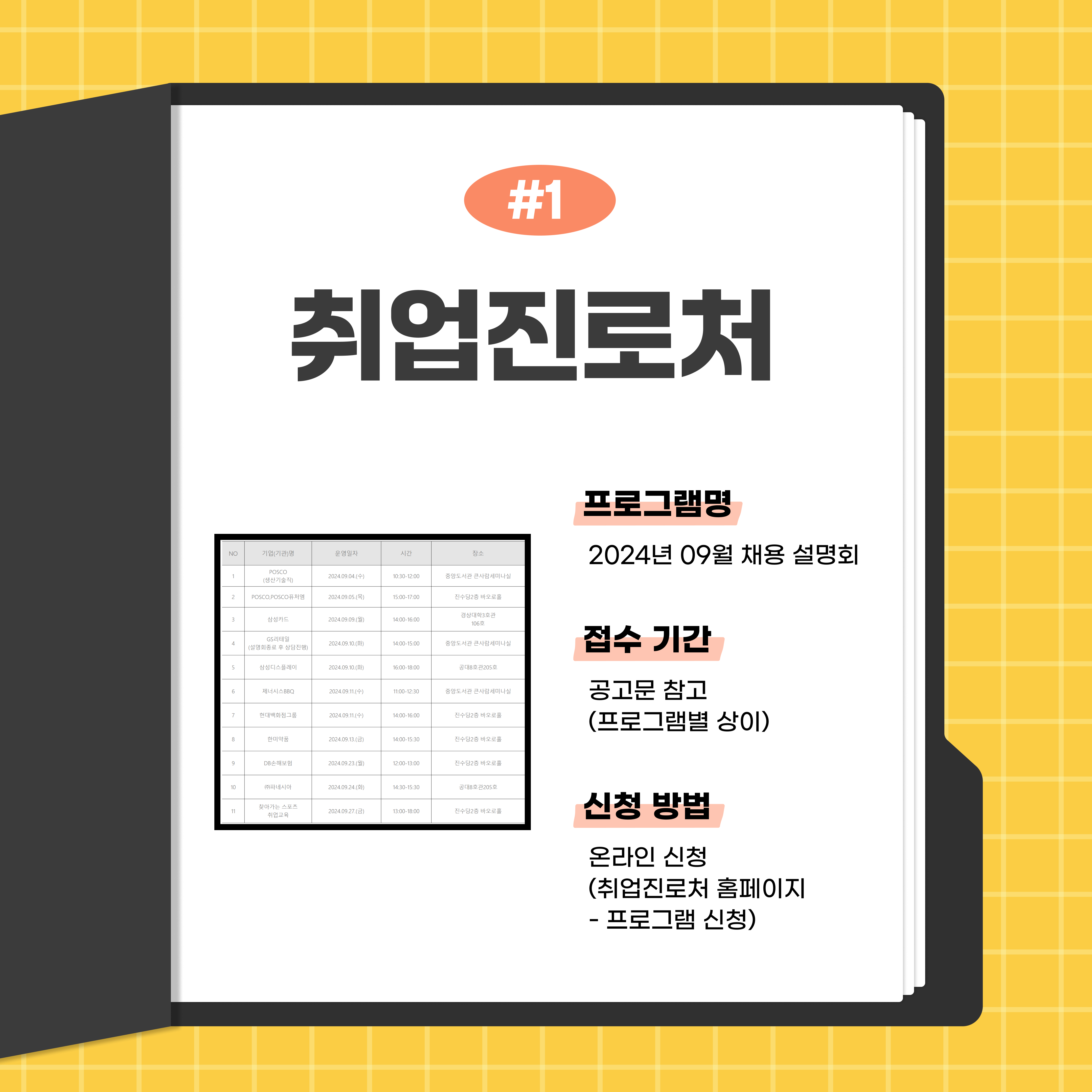 교내에서 진행하는 다양한 취창업 프로그램을 선별하여 학우님들께 알려드립니다.