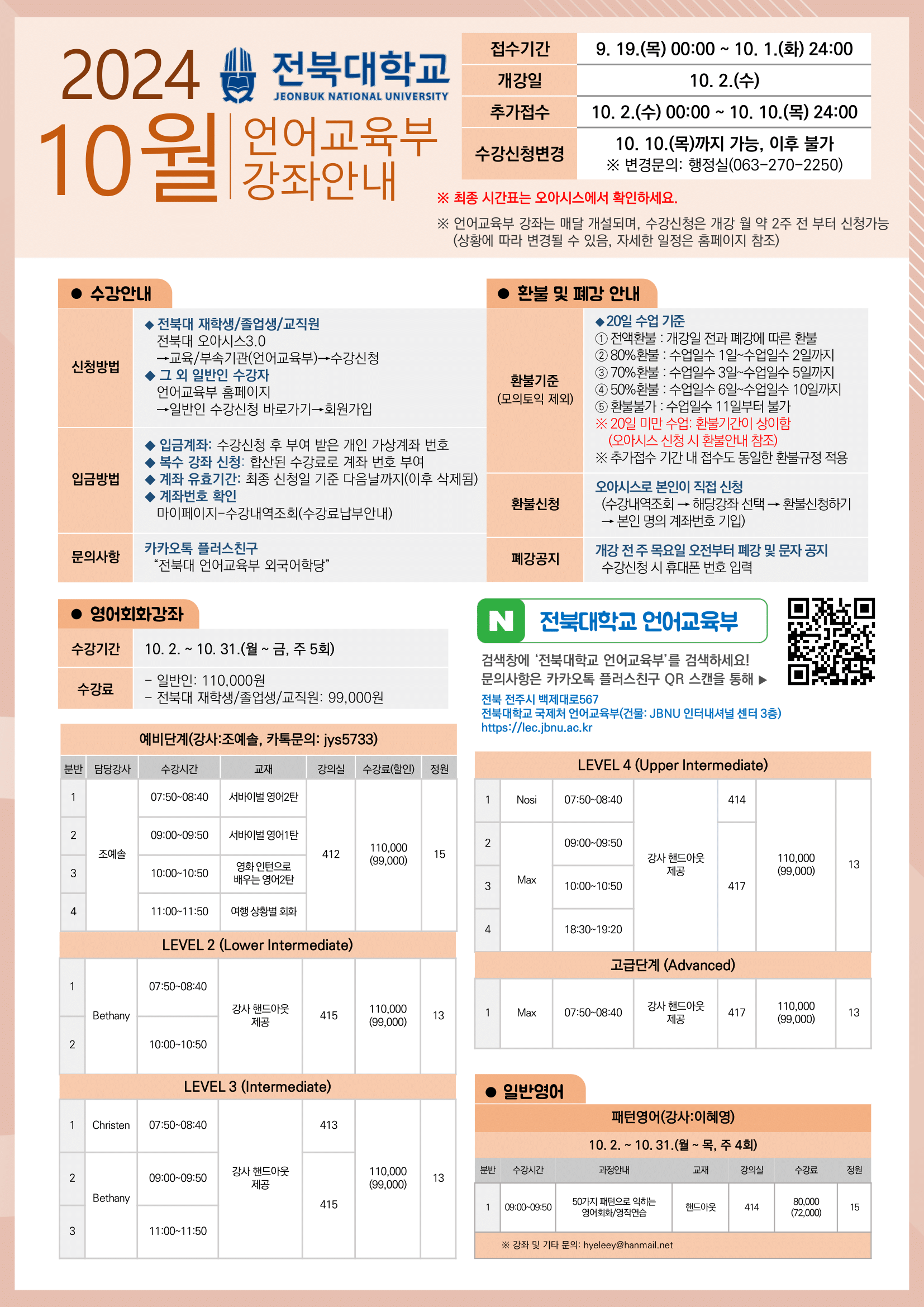 모두의 안전 그리고 모두가 어학교육을 누릴 수 있도록 많은 협조 부탁드립니다.
