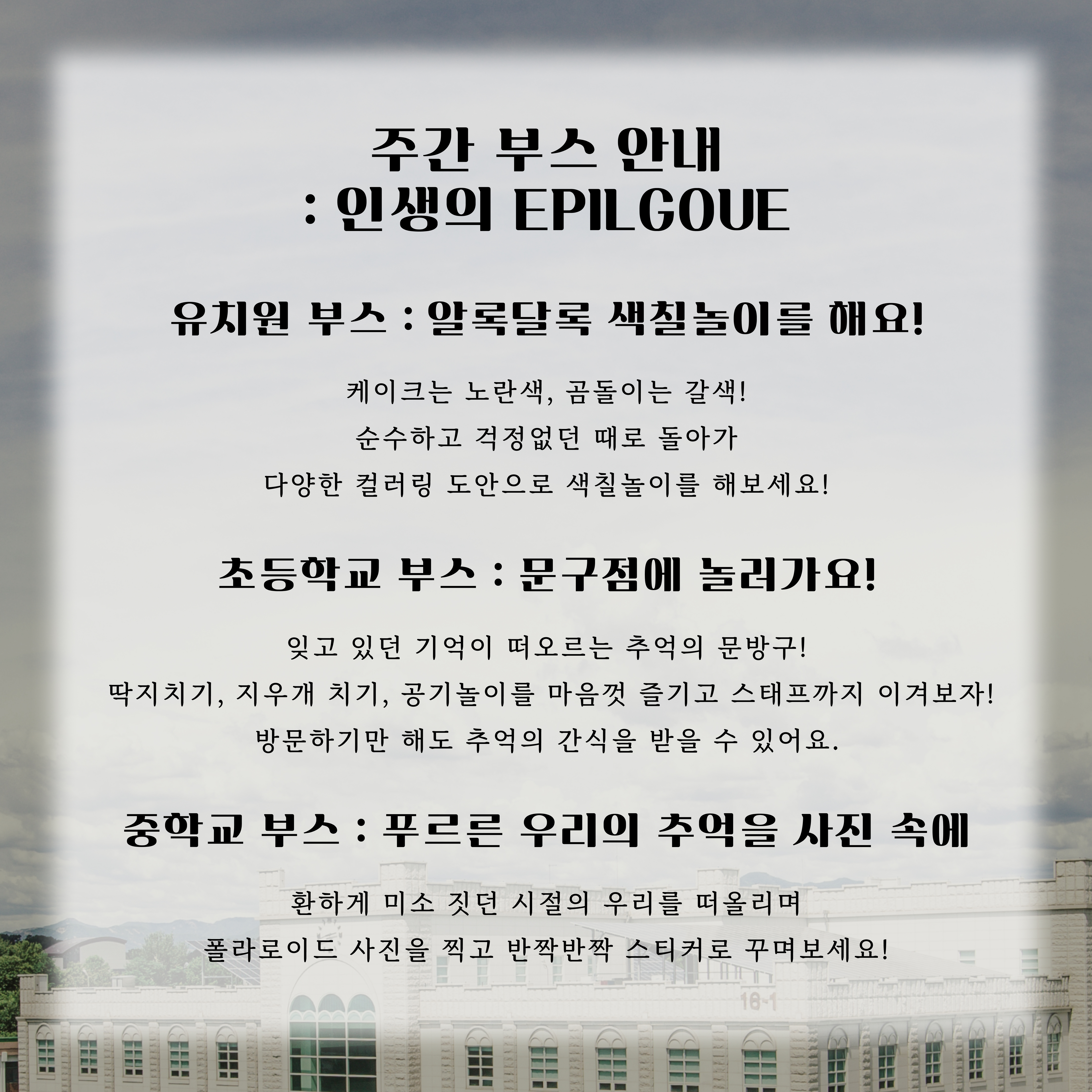 2024 학문체 에필로그 주간 부스를 소개 해드립니다.