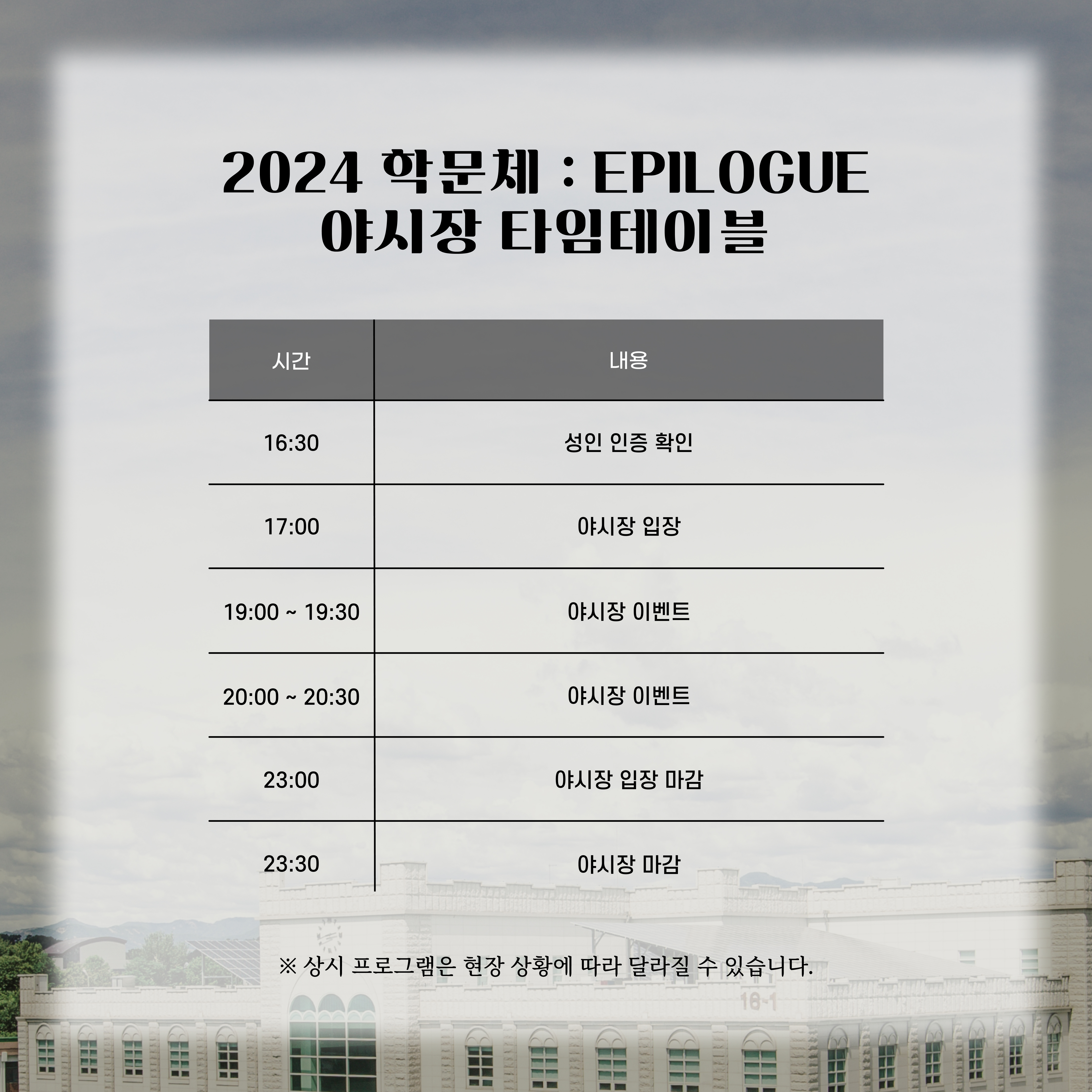 [2024 학문체 : EPILOGUE 야시장 타임테이블 및 이벤트 안내]