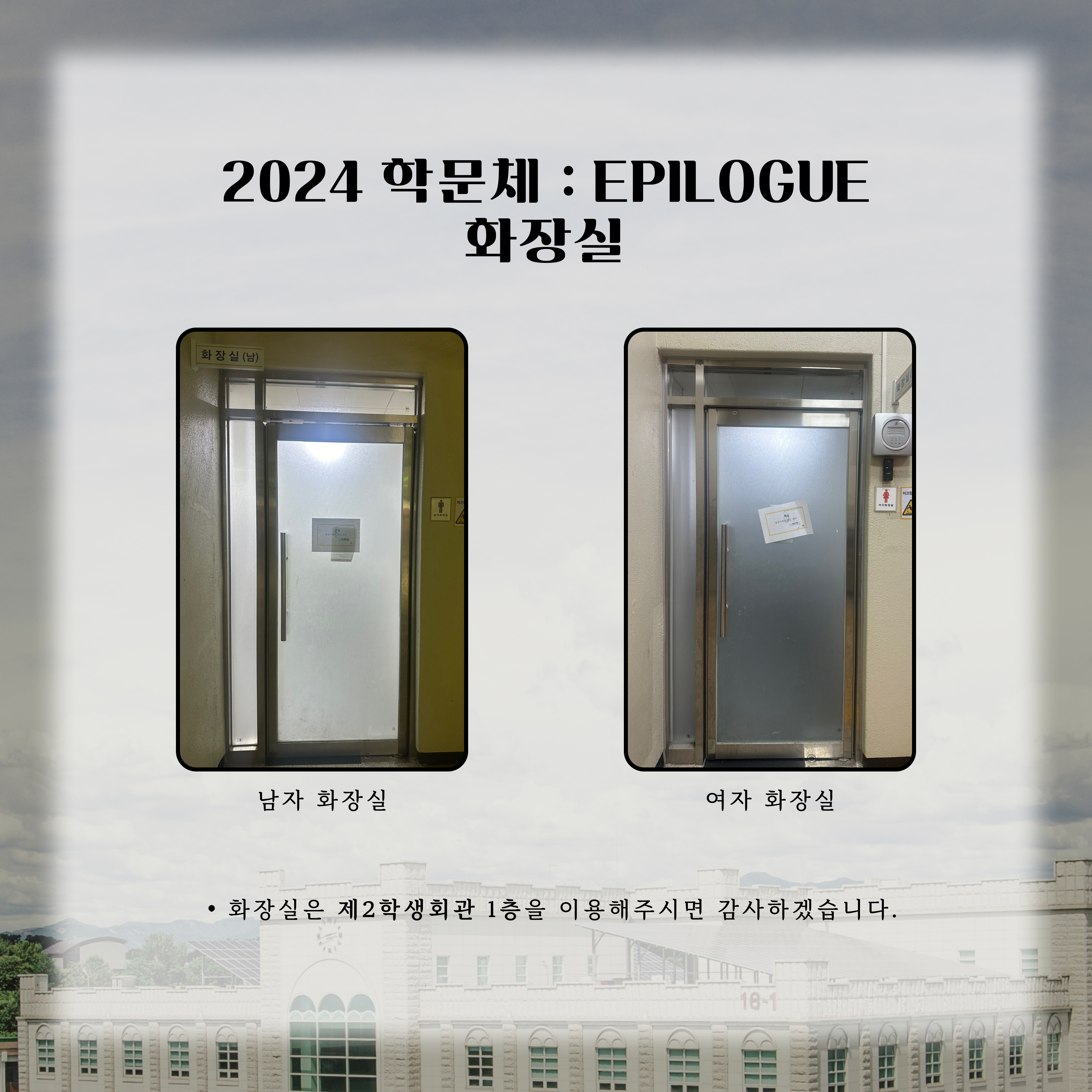 *화장실은 제2학생회관 1층을 이용해주시면 감사하겠습니다.