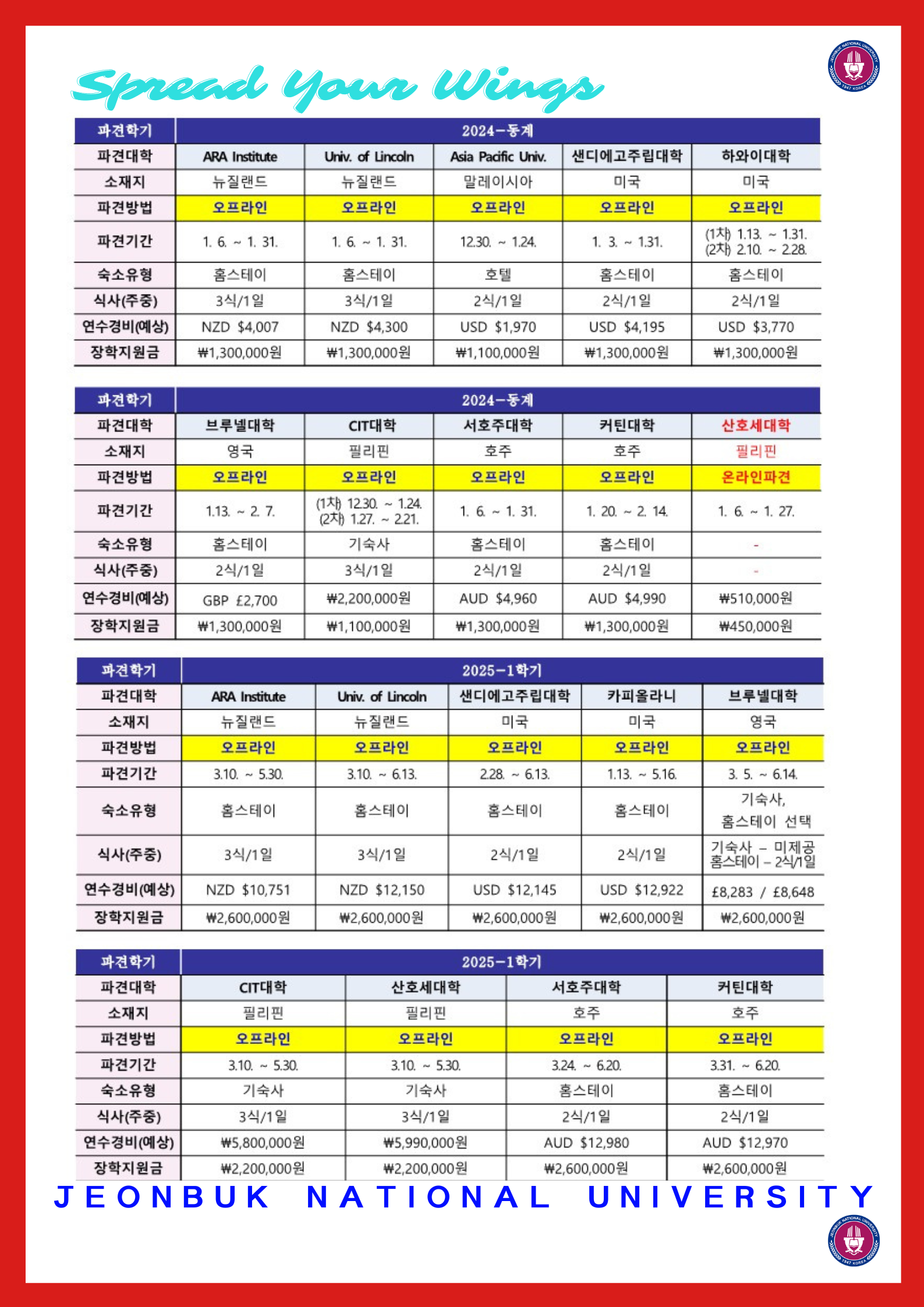 * 2024-동계 파견 희망자 - 1~7학기 재학생 또는 4학년 2학기 재학생 중 9학기 전북대학교에서 수학을 해야 졸업이 가능한자(졸업 유예 예정자는 불가)