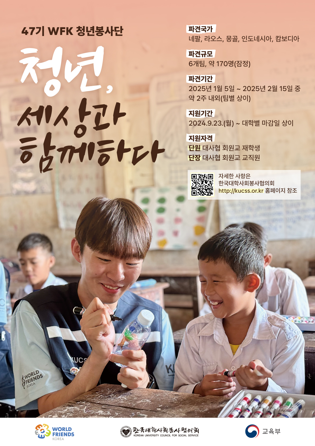 한국대학사회봉사협의회에서 주관하는 47기 월드프렌즈코리아 청년봉사단 단원모집 안내입니다.