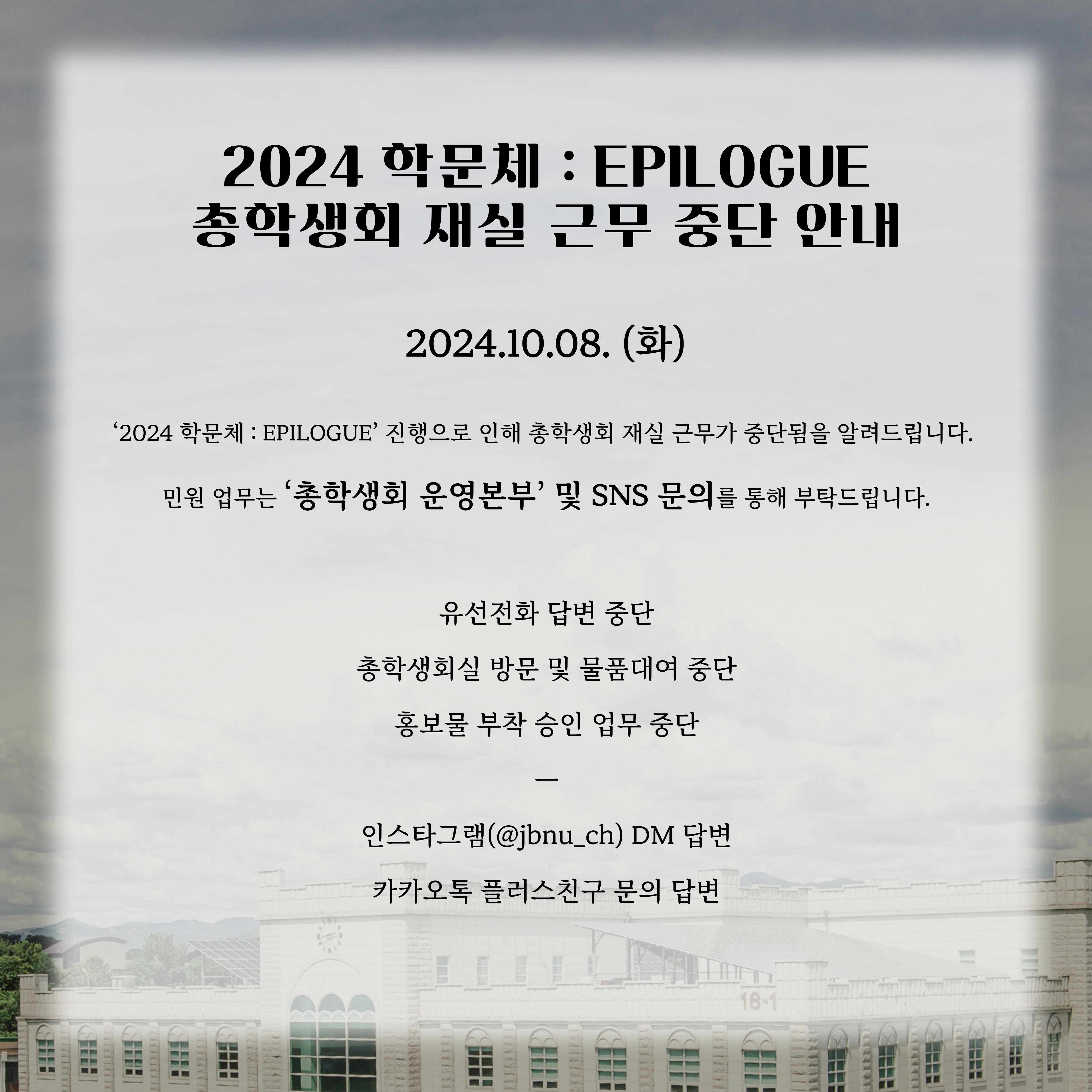 [2024 학문체 : EPILOGUE 총학생회 재실 근무 중단 안내]