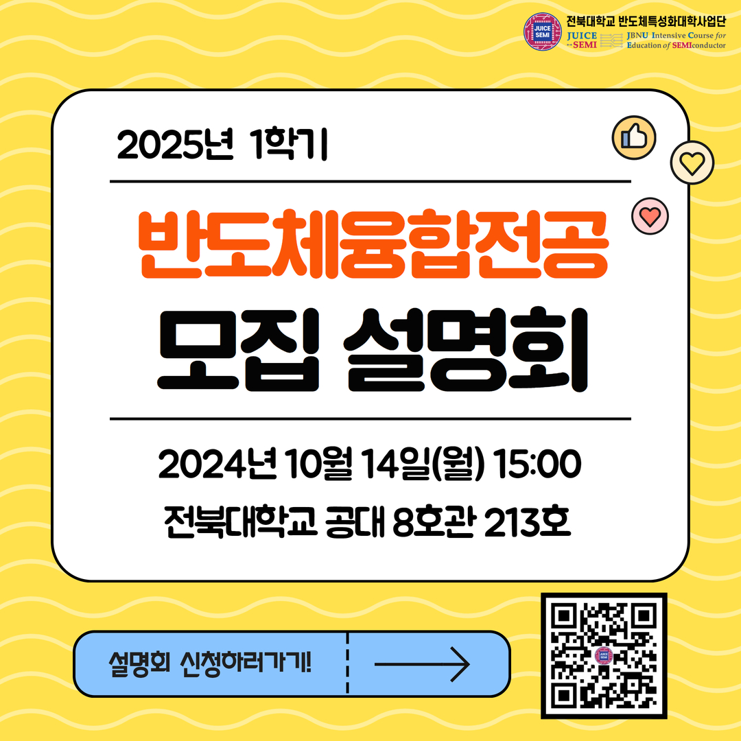 반도체특성화대학사업단에서 2025년도 1학기 반도체융합전공 모집 설명회를 진행합니다.