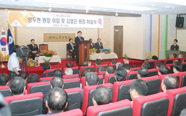 전북대학교병원 양두현 병원장 이임식 및 김영곤 병원장 취임식이 11일 오후 4시 30분 전북대병원 모악홀에서 열렸다. 이날 이·취임식에는 서병수 전북대학교총장권한대행, 이광철 국회의원, 김병곤 전라북도의회 의장, 최규호 전북교육감 등 내·외빈과 병원 교직원 등 300여 명이 참석한 가운데 성황리에 진행됐다.