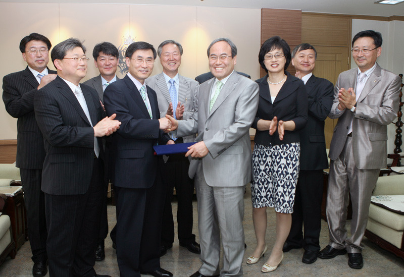 우리 대학 서거석 총장과 익산대 조좌형 학장이 5월 29일(화) 오전 대학 본부 4층 총장실에서 양 대학 통합 합의서에 최종 서명했다.