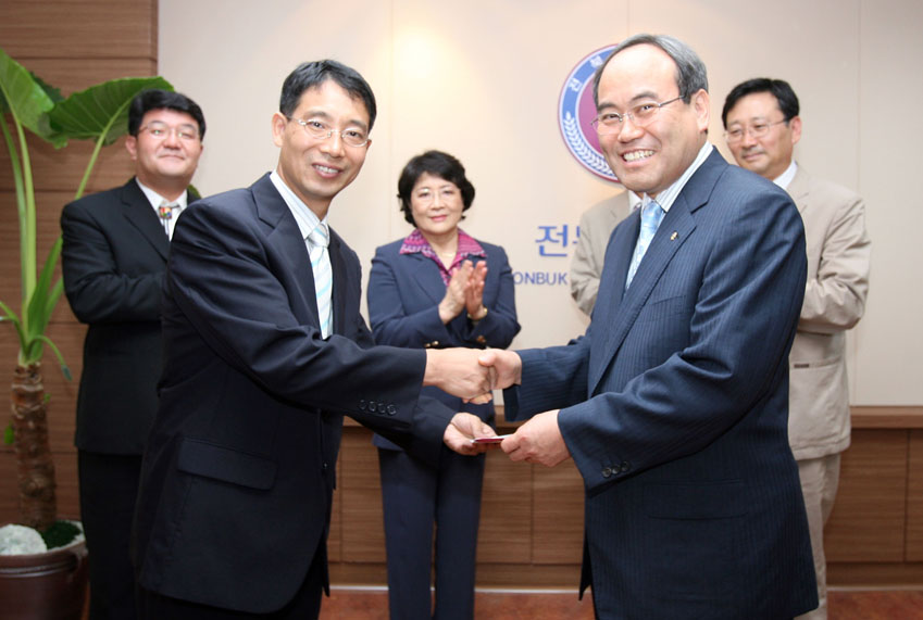 정병화 교수를 비롯한 영어교육과 교수 5명 전원은 6월 25일(월) 오전 본부 4층 총장실에서 발전기금 1천 6백만원을 서거석 총장에게 전달했다.